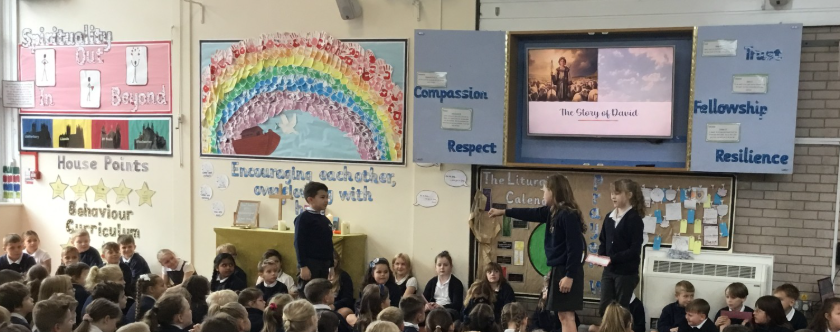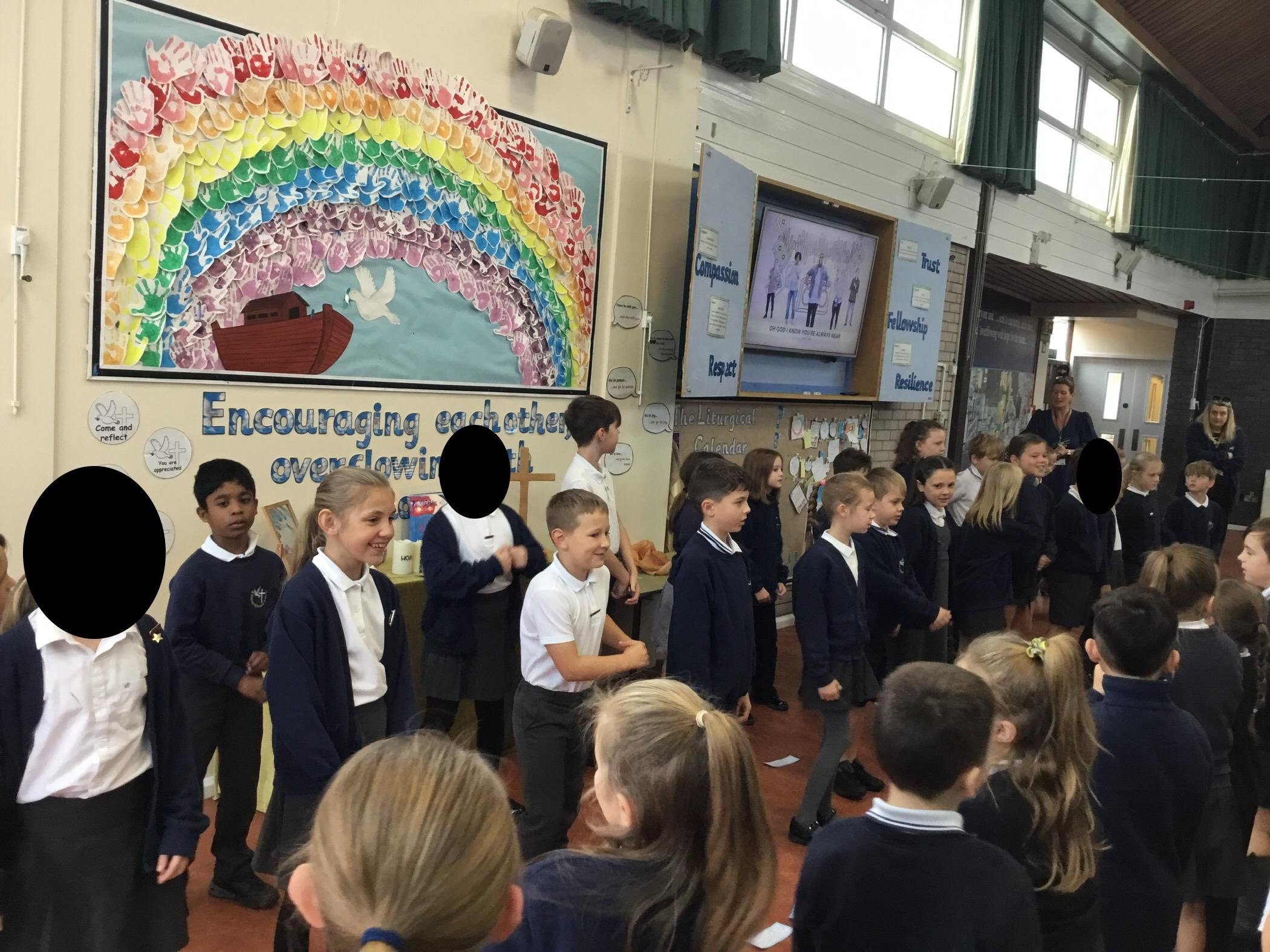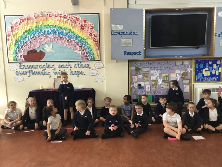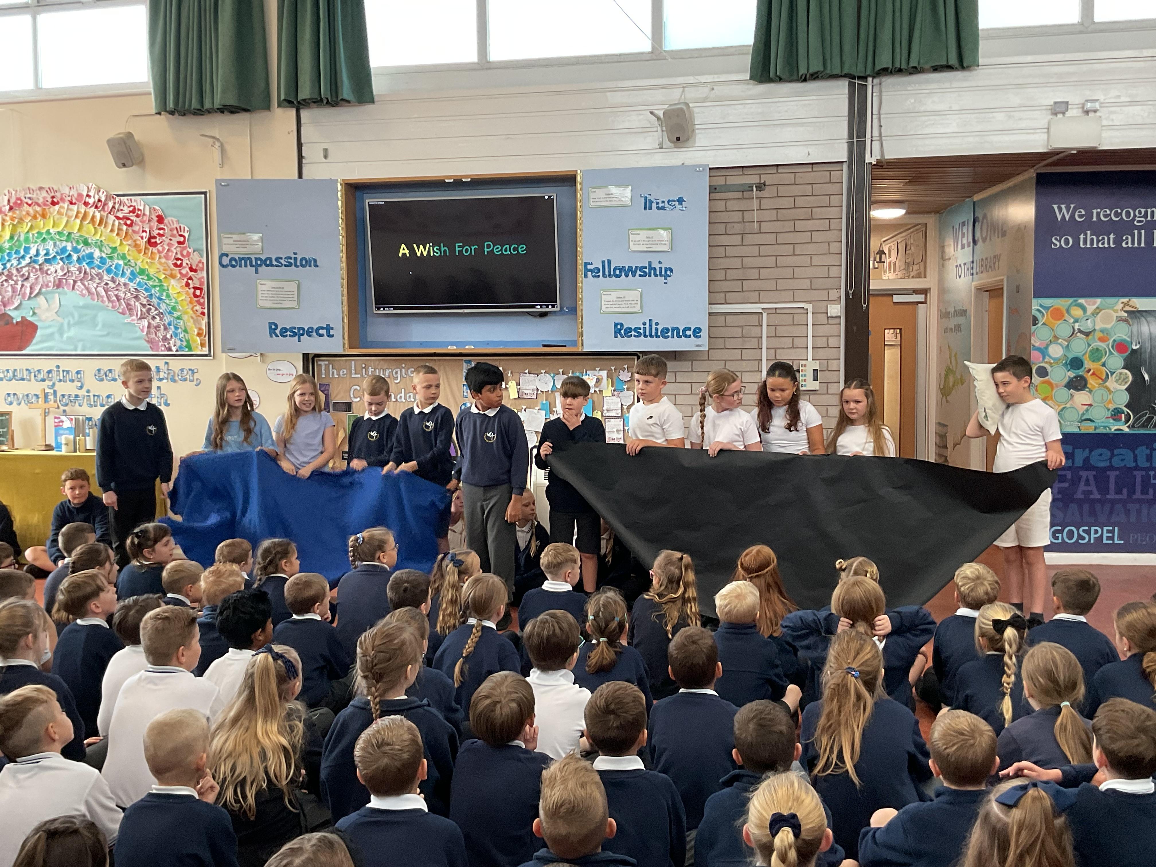 Today, Peace class led worship in the school. Each class has a name based on a virtue. The aim of these names is to develop the character education of children as they pass through each year group. The class told the story of how Jesus brought peace in the turmoil of the storm.