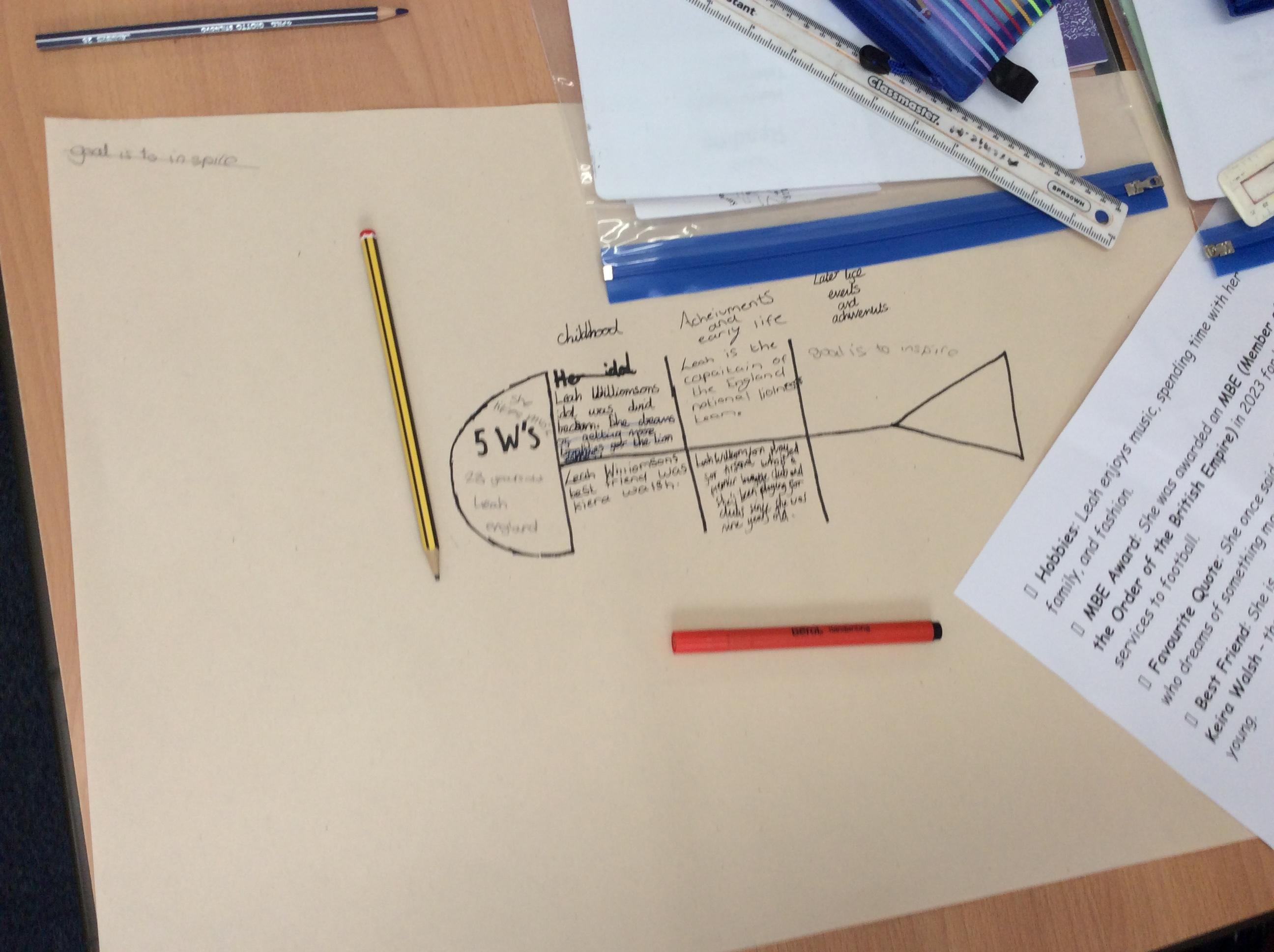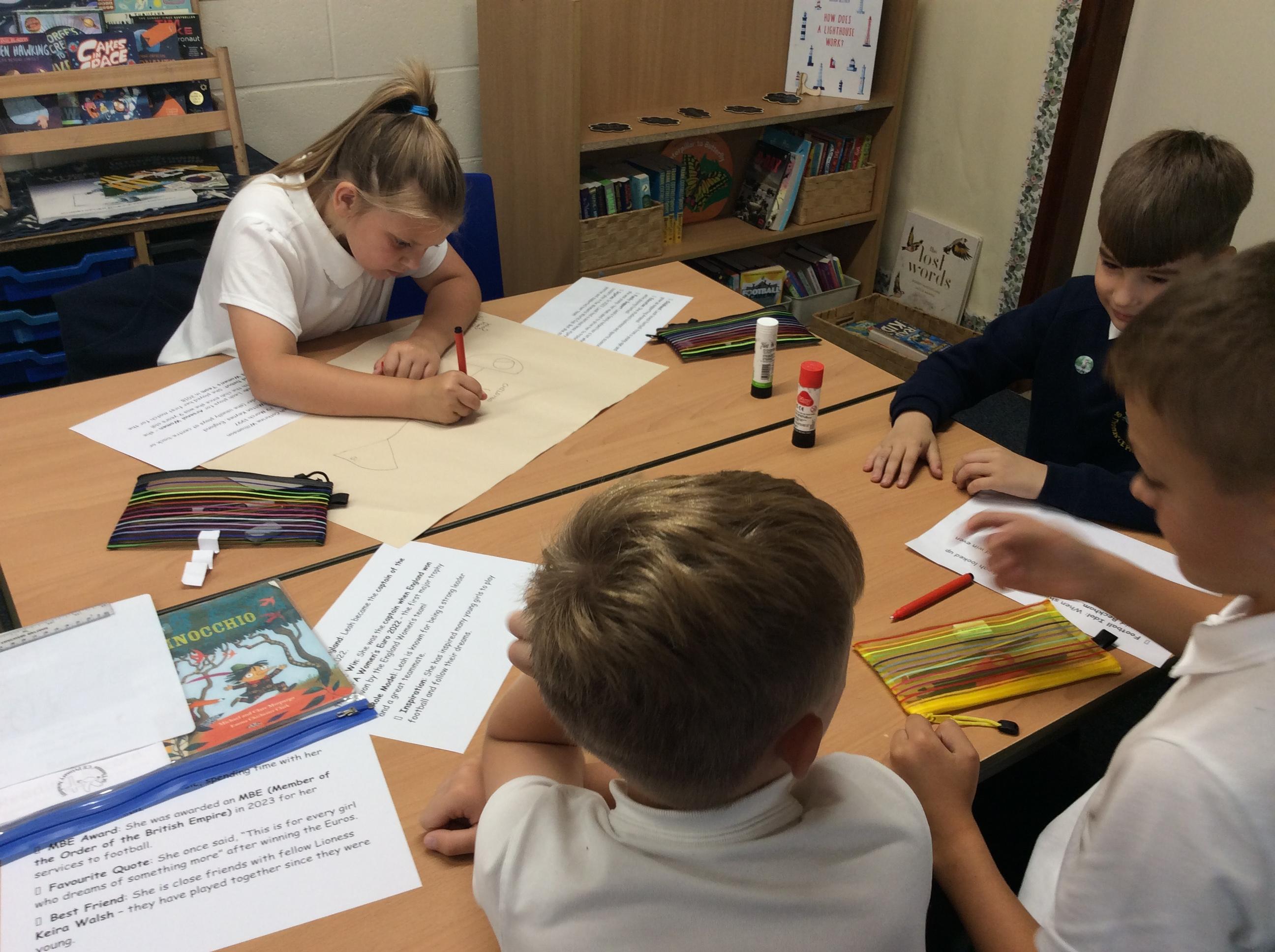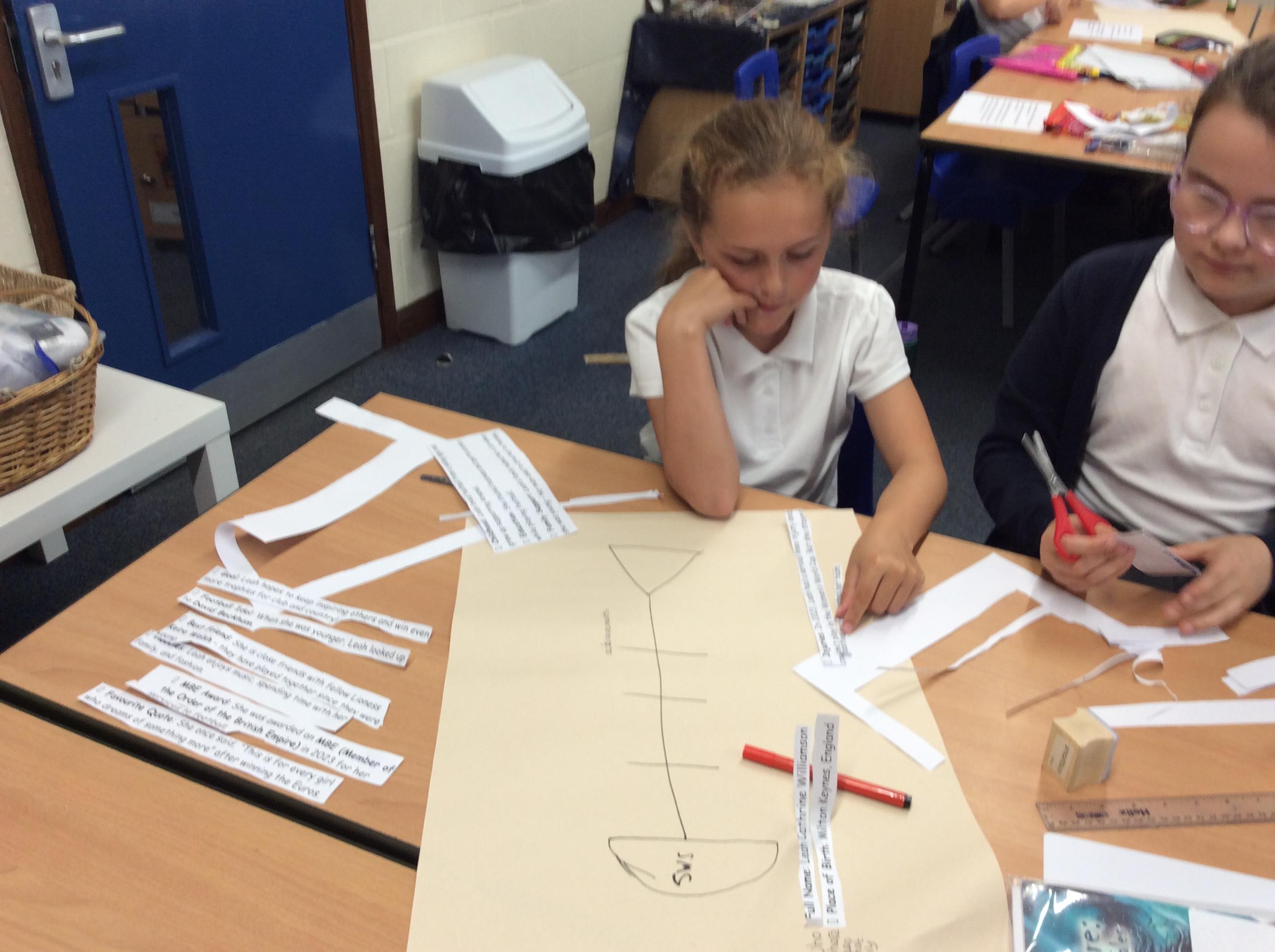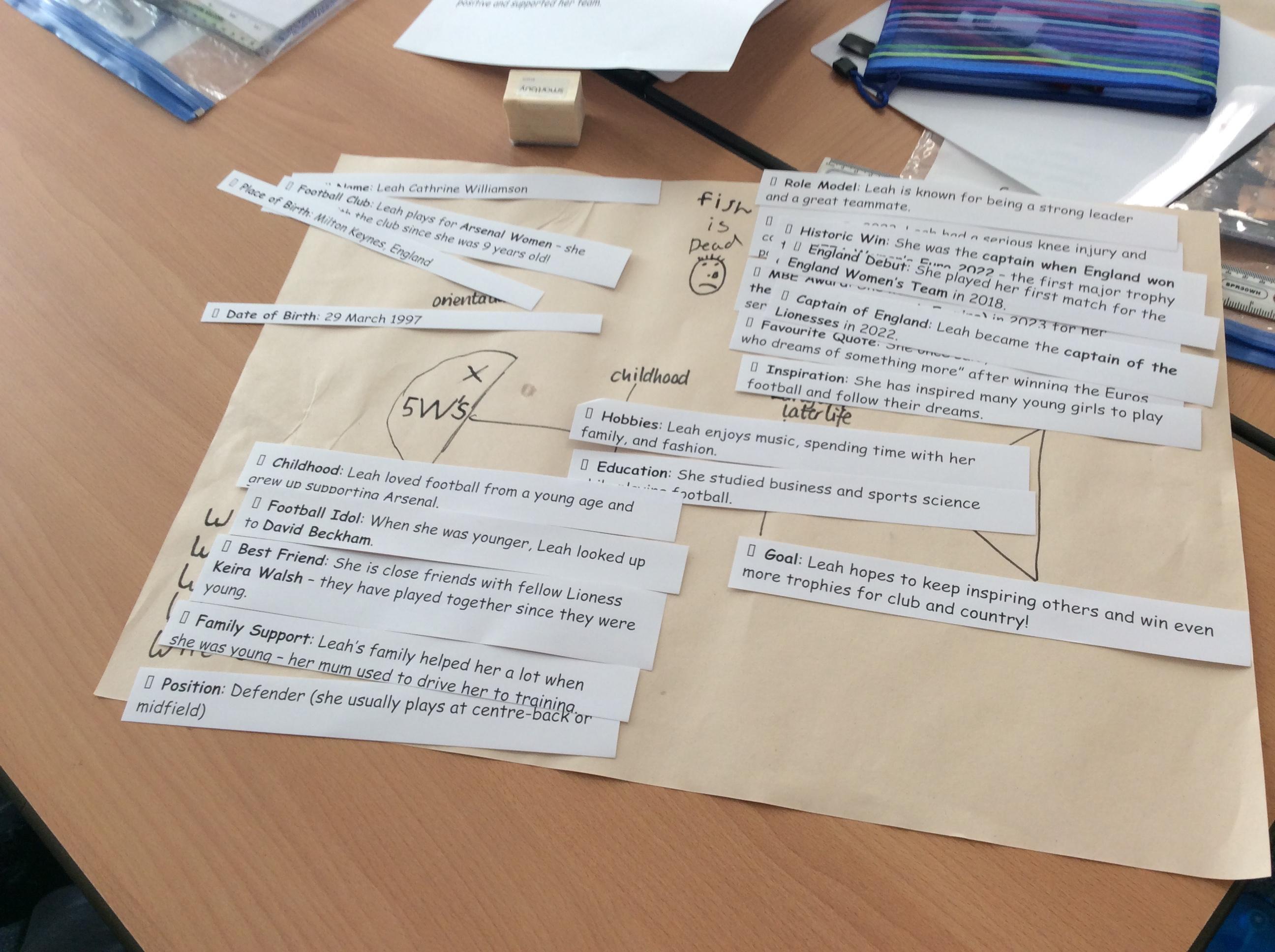 Together, we read facts about Leah Williamson, captain of the winning England Ladies Football team, grouping the information into paragraphs.