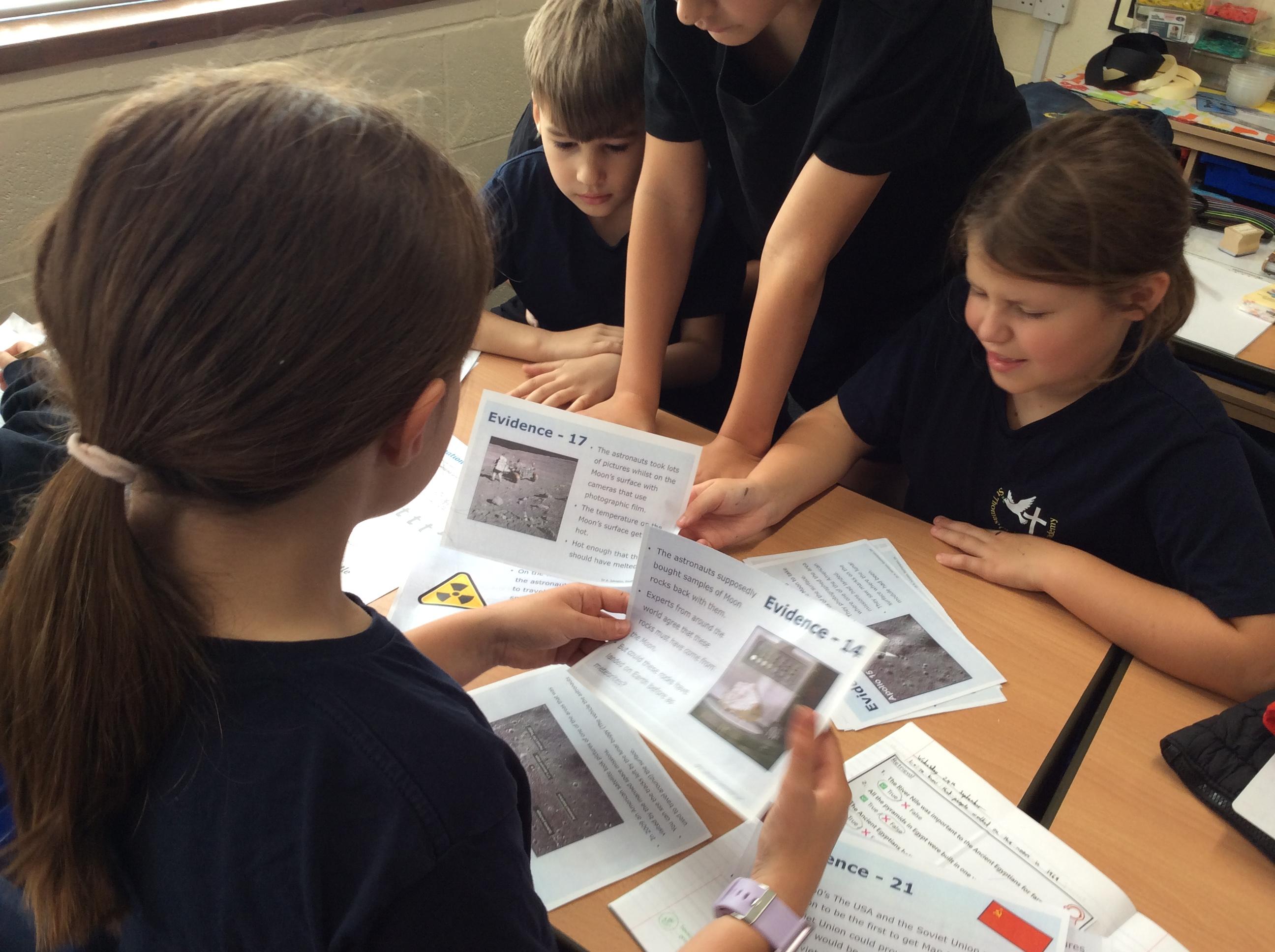 We worked as Historians to consider different sources of evidence, and if they supported that the Americans were the first to land and walk on the moon or not. After discussing JFK's statement that they would be the first on the moon in the 1960's and it happening in 1969, we considered if it really did happen or if it was faked to prove JFK right.
