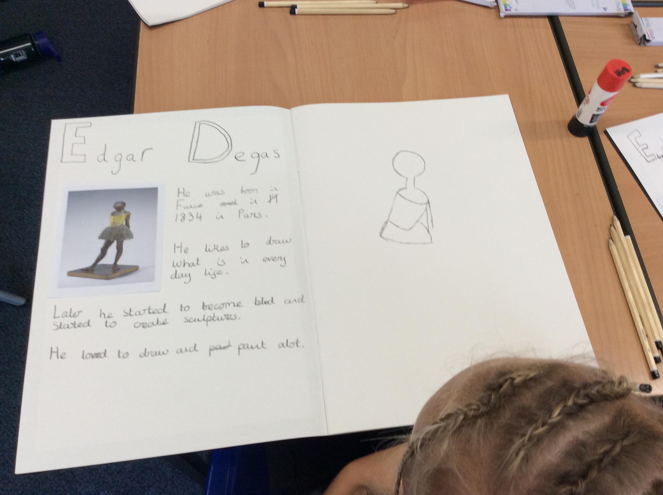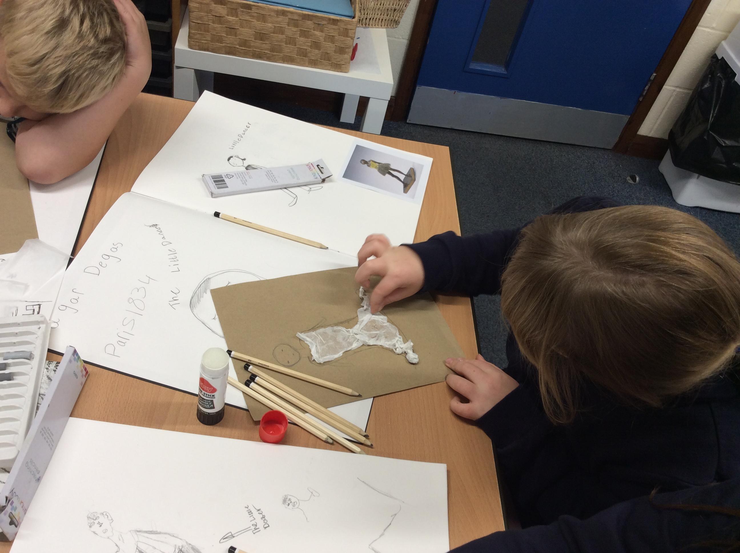 Working as artists, we will explore the work of Edgar Degas, his sketches and sculptures particularly that of the ‘Little Dancer of Fourteen Years’.  After identifying how sculpture can tell a story, we then create our own.