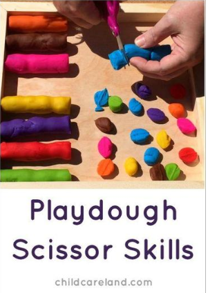 A great activity for helping your child learn how to use scissors correctly. Give them some playdough and let them cut out different shapes.