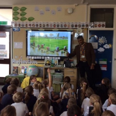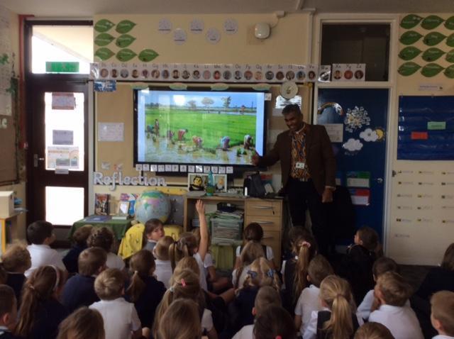 Reverend Sudarshan came to visit children to talk to them about harvest in his home country of Sri Lanka. Many of our children come from farming back grounds and understand that Harvest is a busy time and that - as a church school - we should be thankful to God for what we harvest.