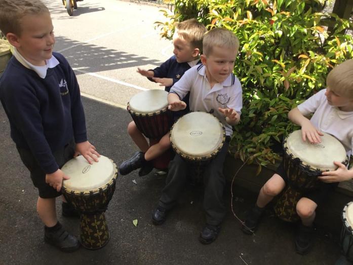 The journey of music begins in EYFS where they are provided many opportunities to engage in singing nursery rhymes and memorising songs that allow them to express, create and improvise. Across the year, children explore and learn how to play instruments such as untuned percussion to demonstrate how they feel, as well as exploring rhythm through dancing. Additionally, the children will begin to explore the fundamental elements of music such as pitch, beat and tempo through exploration opportunities. This could be done individually or within small groups.
