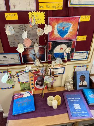 At St Thomas' we encourage prayers during Collective Worships, lunch times and the end of the day. However, with the inclusion of our Reflective Areas children are able to use it to pray or reflect and think about themselves and others.