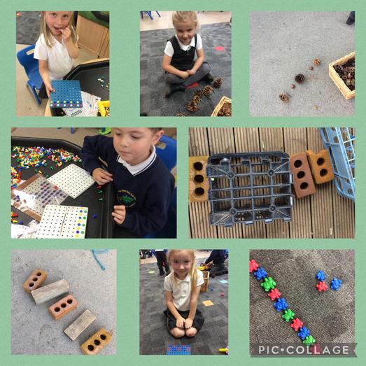 In Maths the children have been exploring pattern, they have looked at where patterns can be found and how to make a pattern. The children have created repeated patterns using colour, objects around the classroom, objects found outside, 2D shapes and musical patterns.