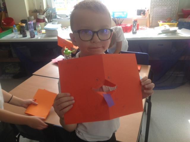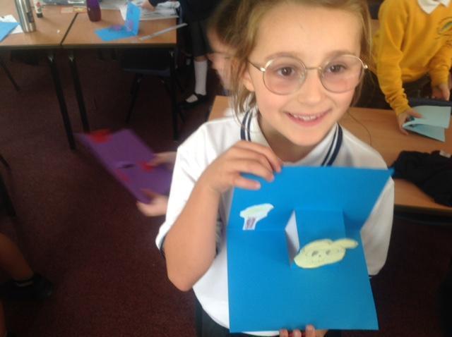In DT, we are learning about the mechanisms that enable pop-up books to work. We have looked at pulleys, levers, folds and turns. We practiced how these worked by creating some pop-up cards for friends and family. Everyone did an amazing job and showed resilience and commitment to the challenge.