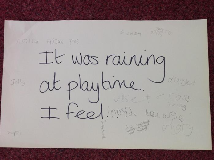The children discussed feelings linked to different situations that they may face in day to day life. They certainly came up with many feelings and examples.