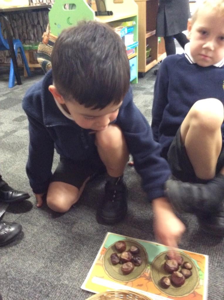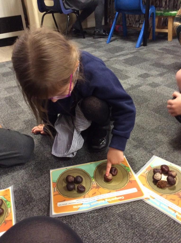 In Maths this week, the children have been using the vocabulary `more` and `less` to describe different quantities. They have used natural resources and identified which basket is holding more or less. The children could explain when a basket had an equal amount and why they thought this. Throughout the week, they have continued to explore amounts but also used vocabulary such as `long` and `short.`