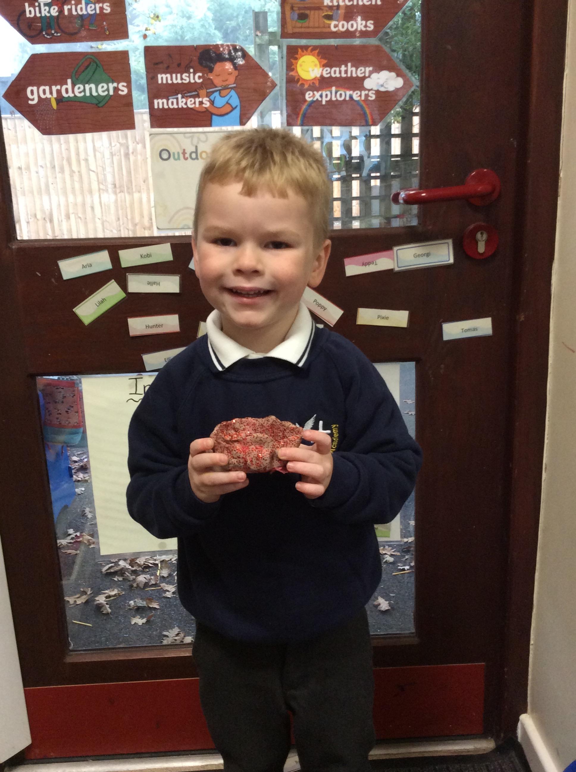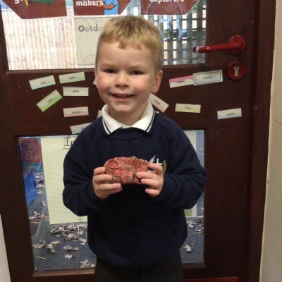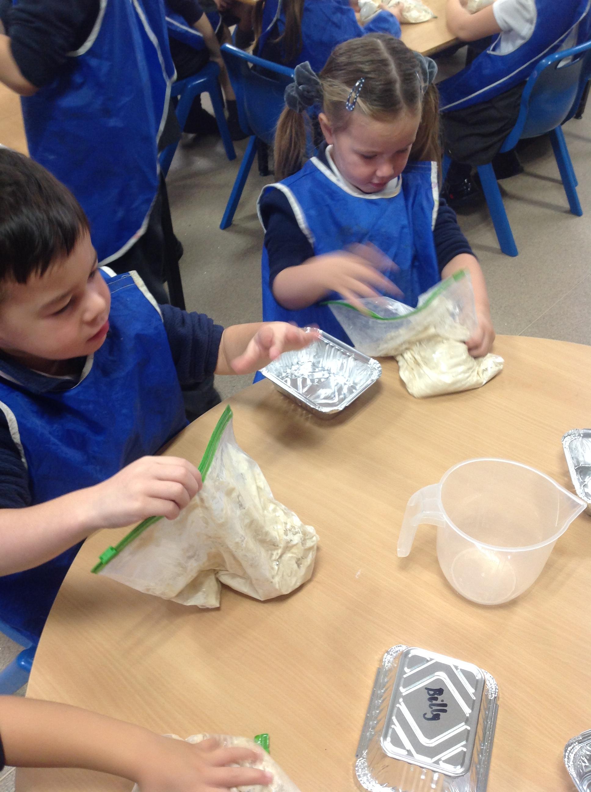 This week the children have been reading the story `The Little Red Hen`. They have retold the story orally using actions, labelled key characters using their sounds and also took part in a baking activity with Steve from Asda. The children showed excellent listening skills and followed the recipe steps independently. They explored kneading the dough and shaped their loaf ready for baking. In the afternoon, the children had the opportunity to taste their bread and generated a range of vocabulary that best describe the taste and texture.