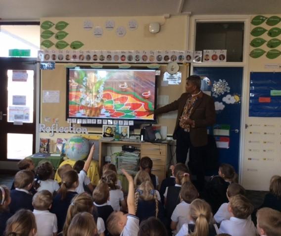 Rector Sarvananthan came to visit Year 2 to talk to them about how farmers harvest crops in Sri Lanka and how Harvest Festival is celebrated there. The children had so many questions and were able to compare it with harvest in the UK.