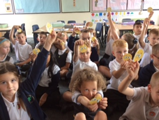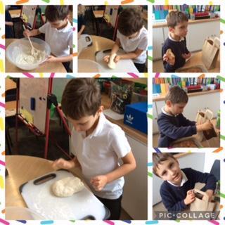 The children worked together to make break in preparation for the Harvest Festival. The children then gave out bread rolls to their grown ups after their performance.
