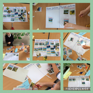 In geography the children looked at human and physical features. The children talked about what they were and the difference between them. They then sorted photographs into human and physical features.