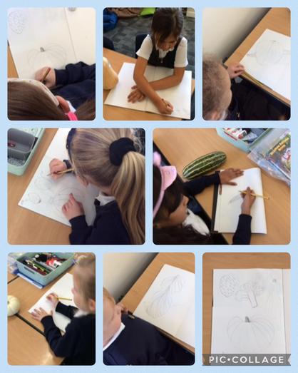 The children made careful observations of fruit and vegetables this week to explore designs for their final art piece. The children focussed on texture and pattern.