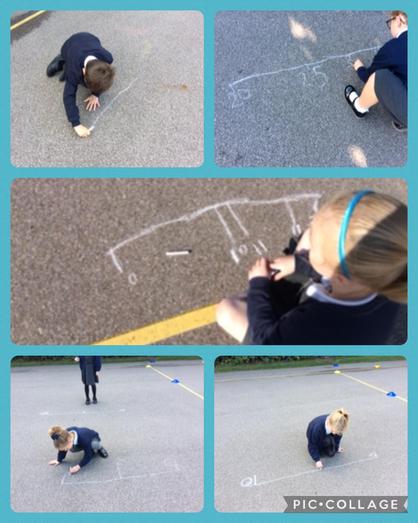 In maths, the children took their learning outside. They drew number lines with different start and end points. The children then estimated where different numbers would go on the number line, using their knowledge of number and place value.