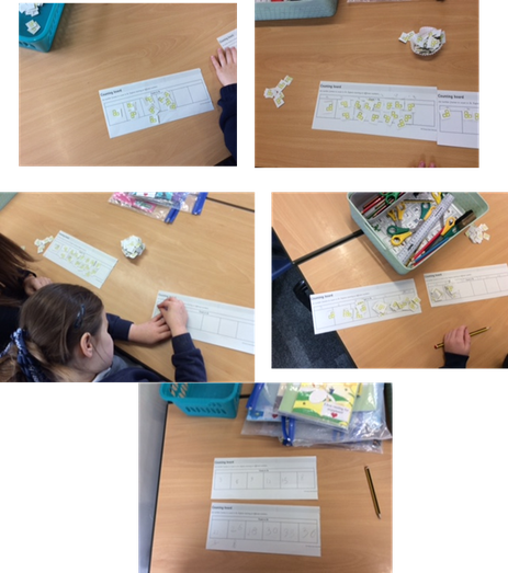 This week the children have been learning to count in threes. They used practical resources to help them with this and made their own number line.