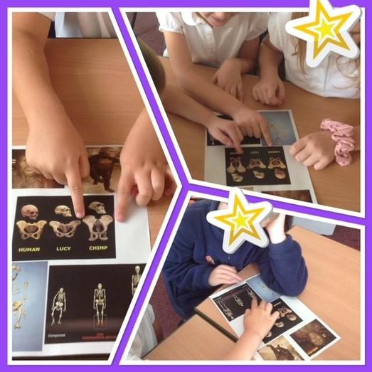Today in History, we started our new learning of the 'Stone Age' by going back in time to when the first humans walked on the Earth! We were told the story of Lucy. A young female whose fossil was found by scientists in 1974, which dated back millions of years. We studied images of her skeleton alongside images of a human skeleton and a chimpanzee and discussed the key similarities and differences.