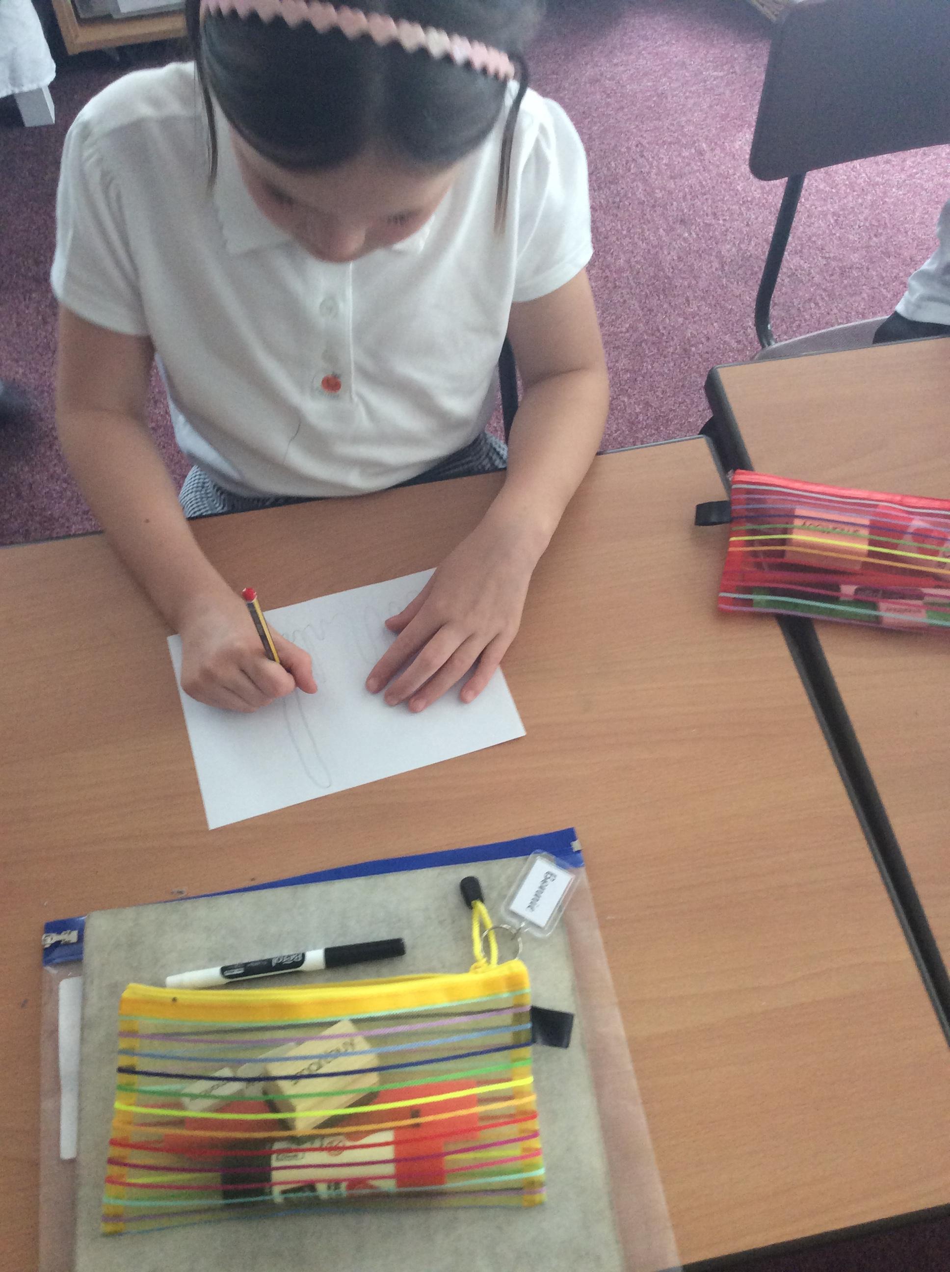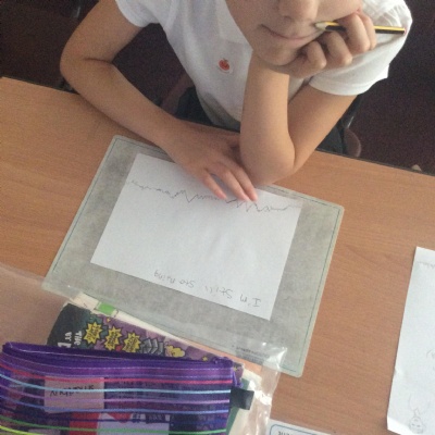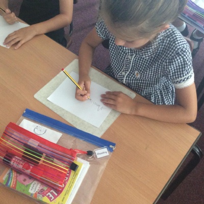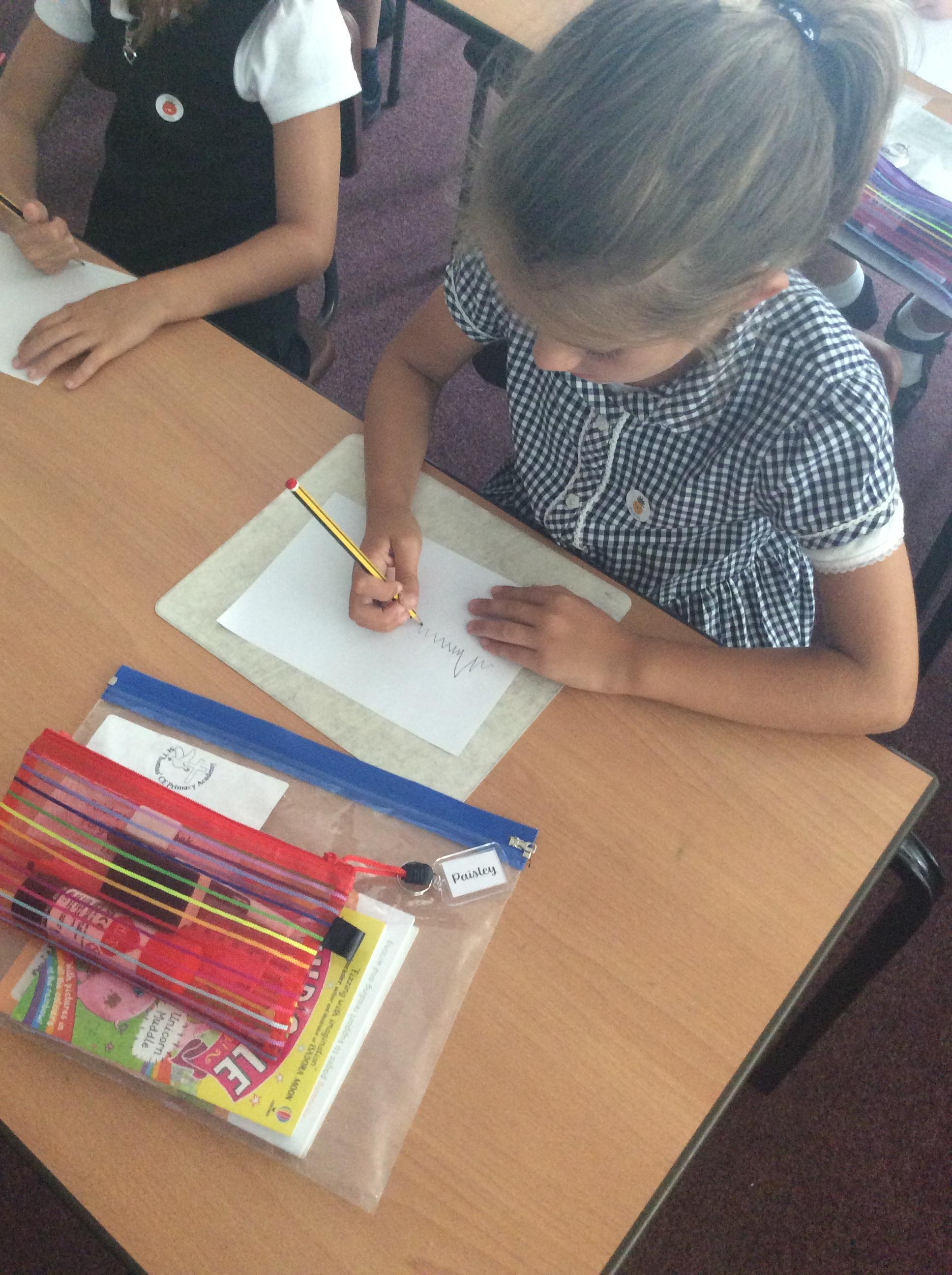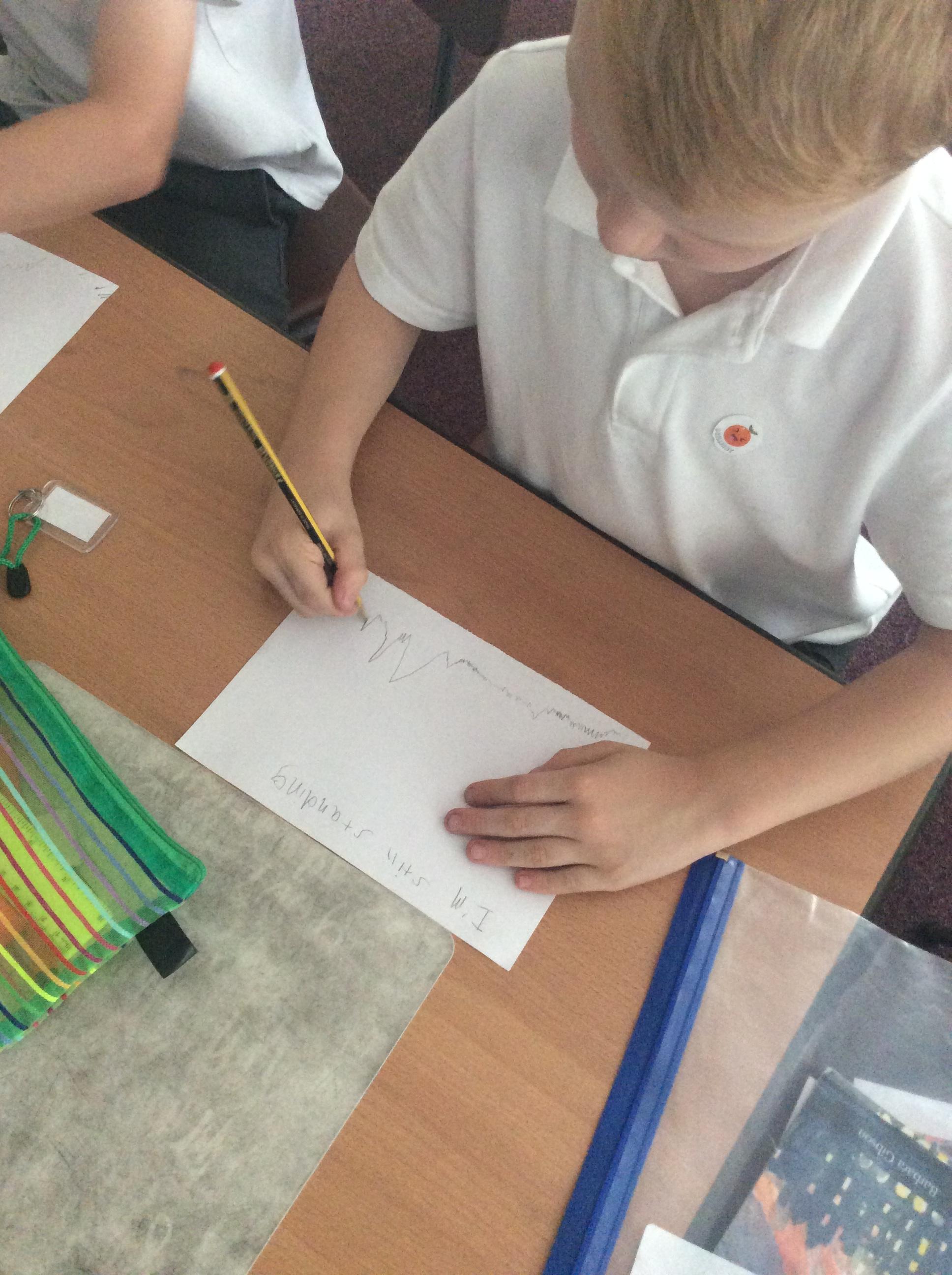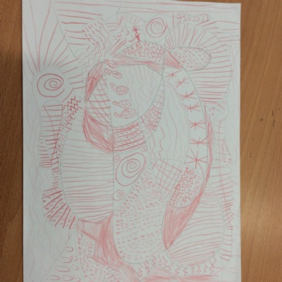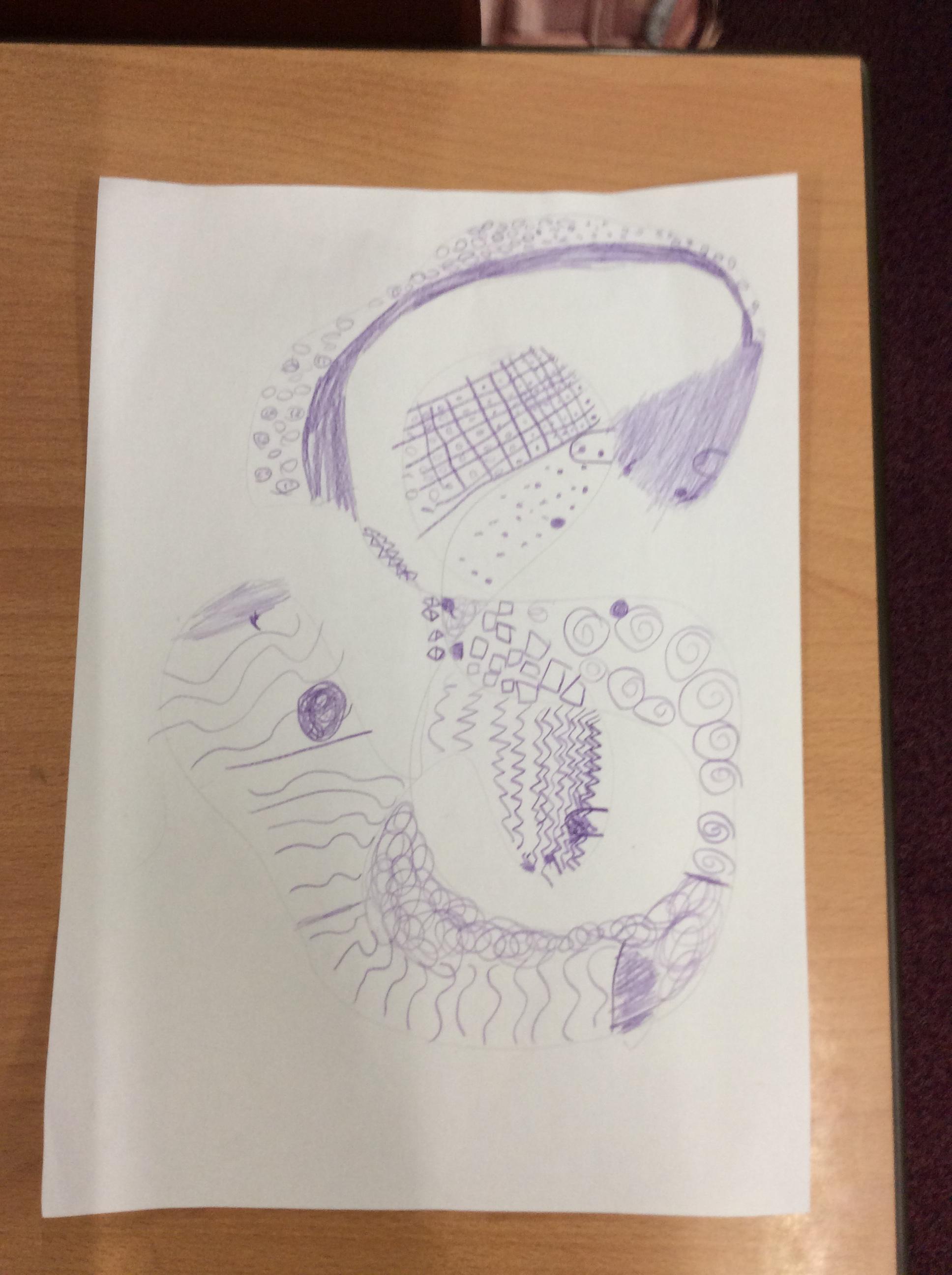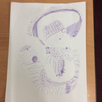 Every Wednesday, we focus on our wellbeing through a different activity. Here we can see our taking a pencil for a walk examples where we had just one colour and had to create a different pattern in each part.