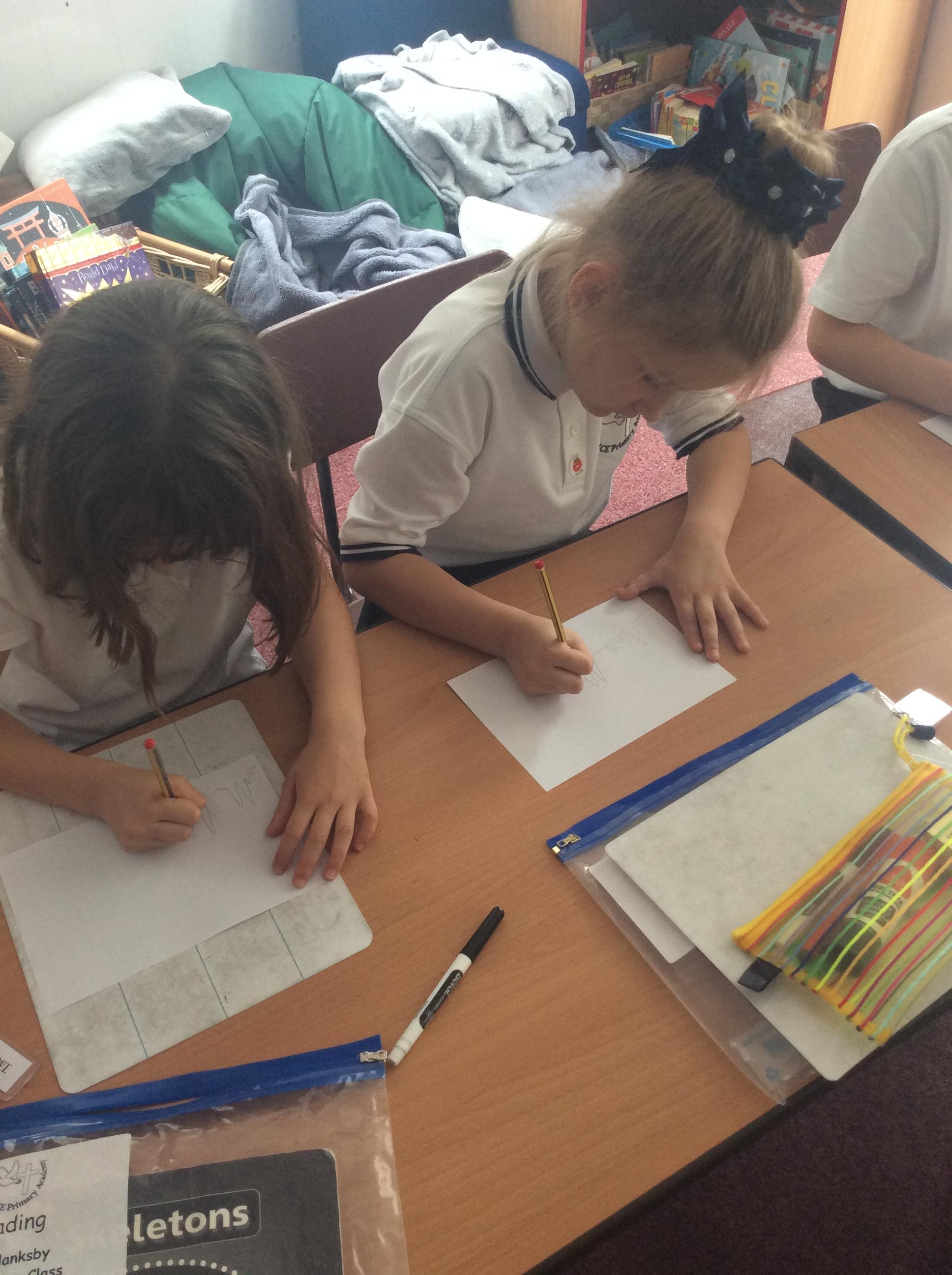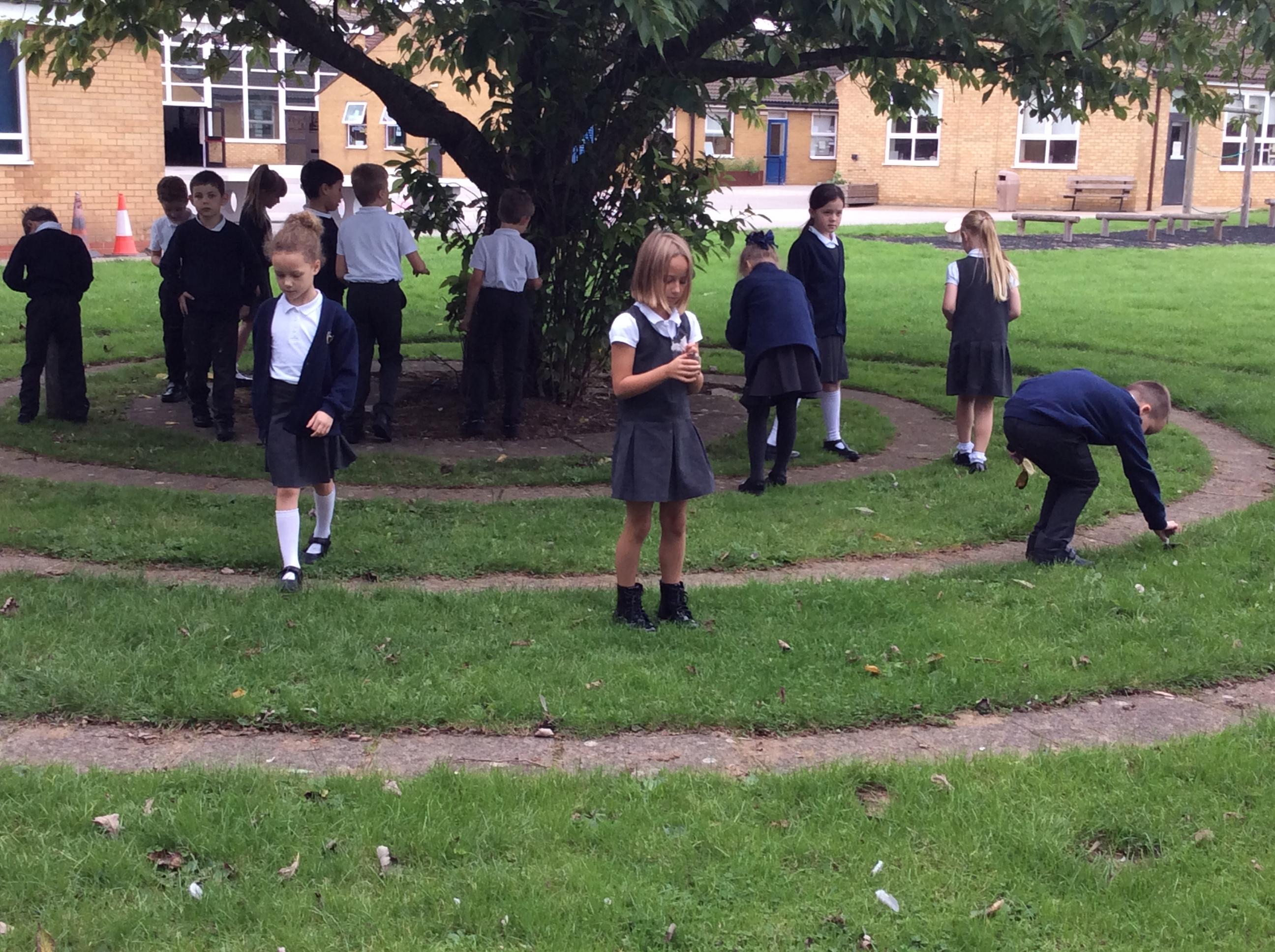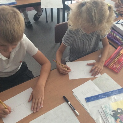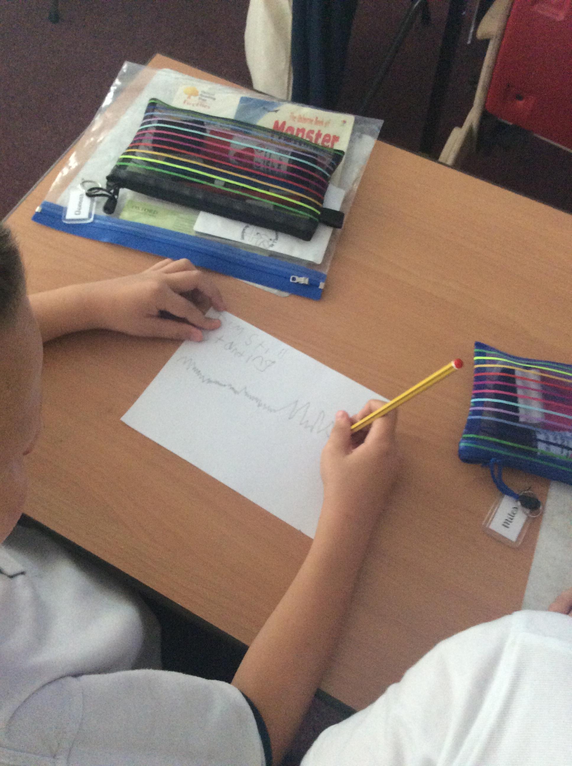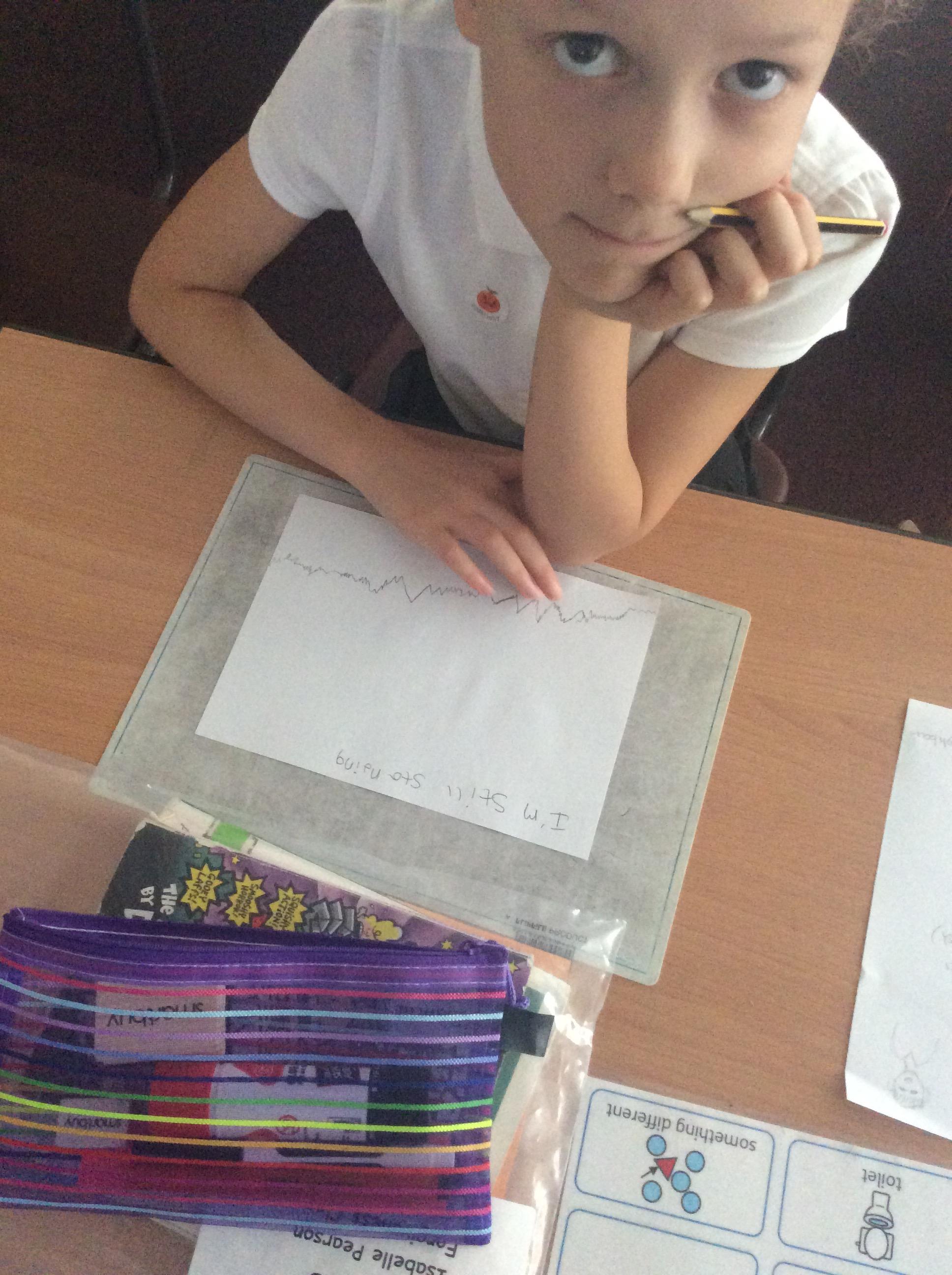 Every Wednesday, we focus on our wellbeing through a different activity. Here we can see our taking a pencil for a walk examples where we had just one colour and had to create a different pattern in each part.