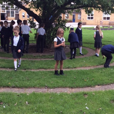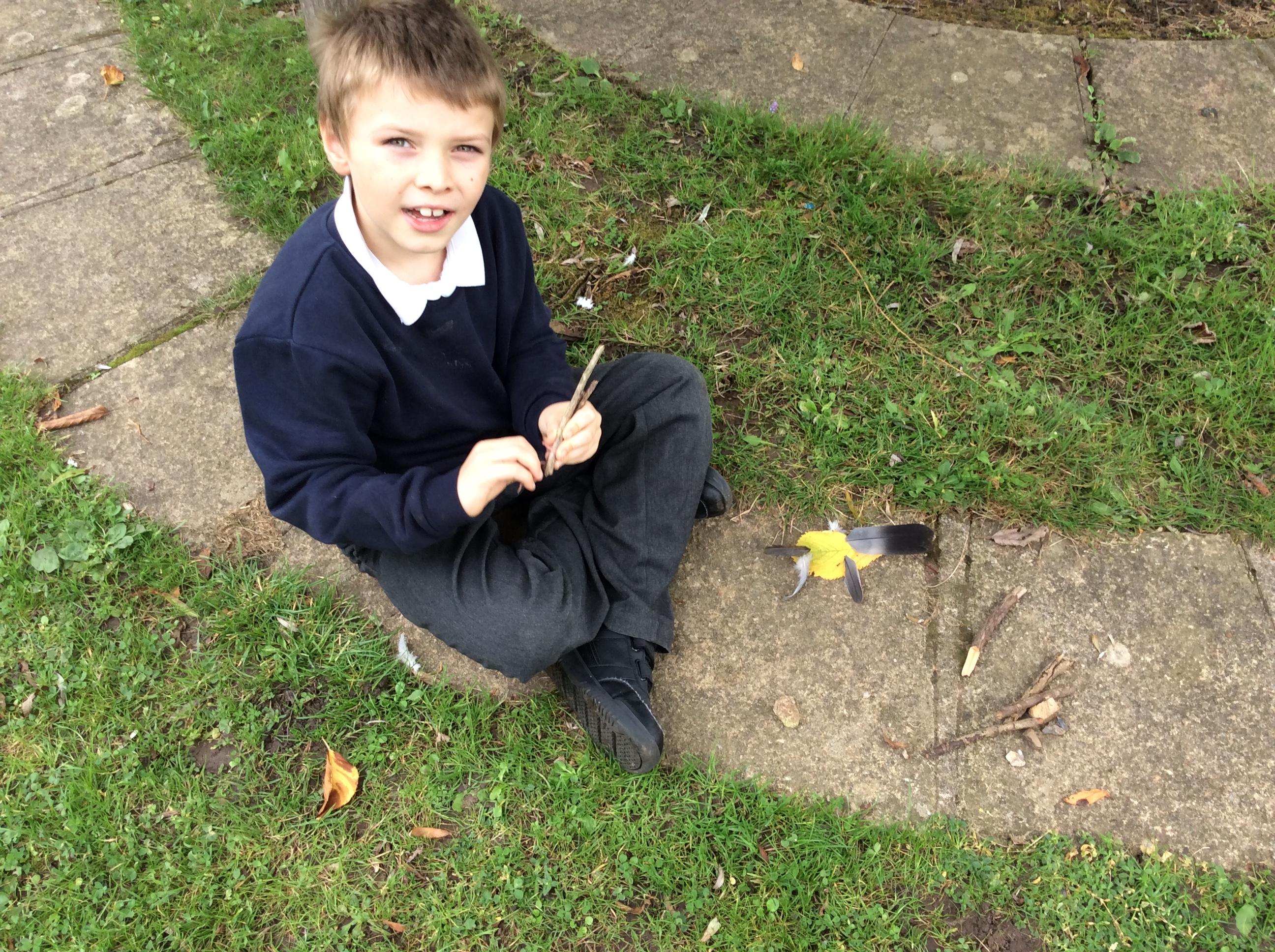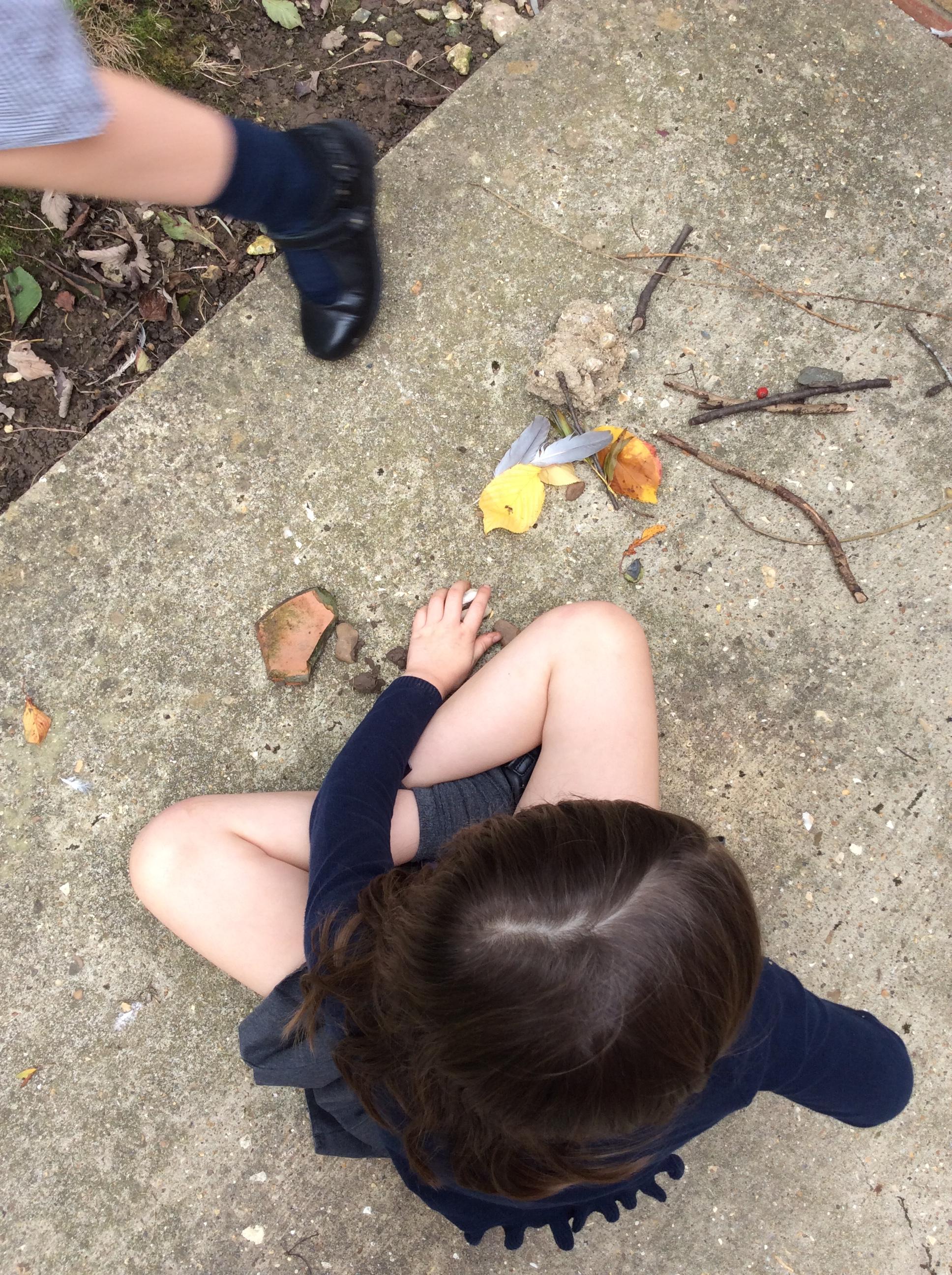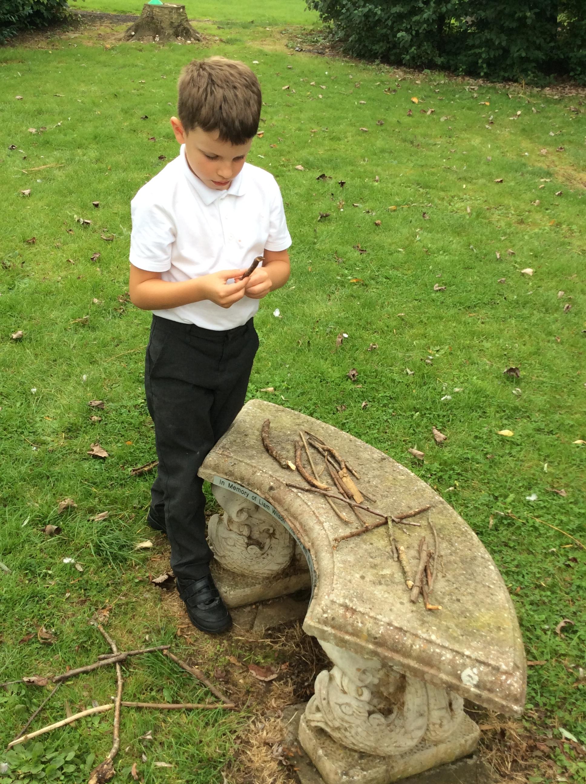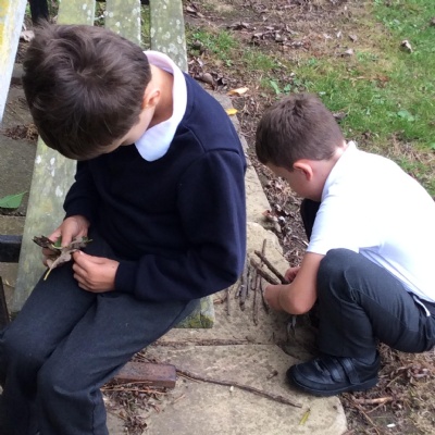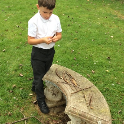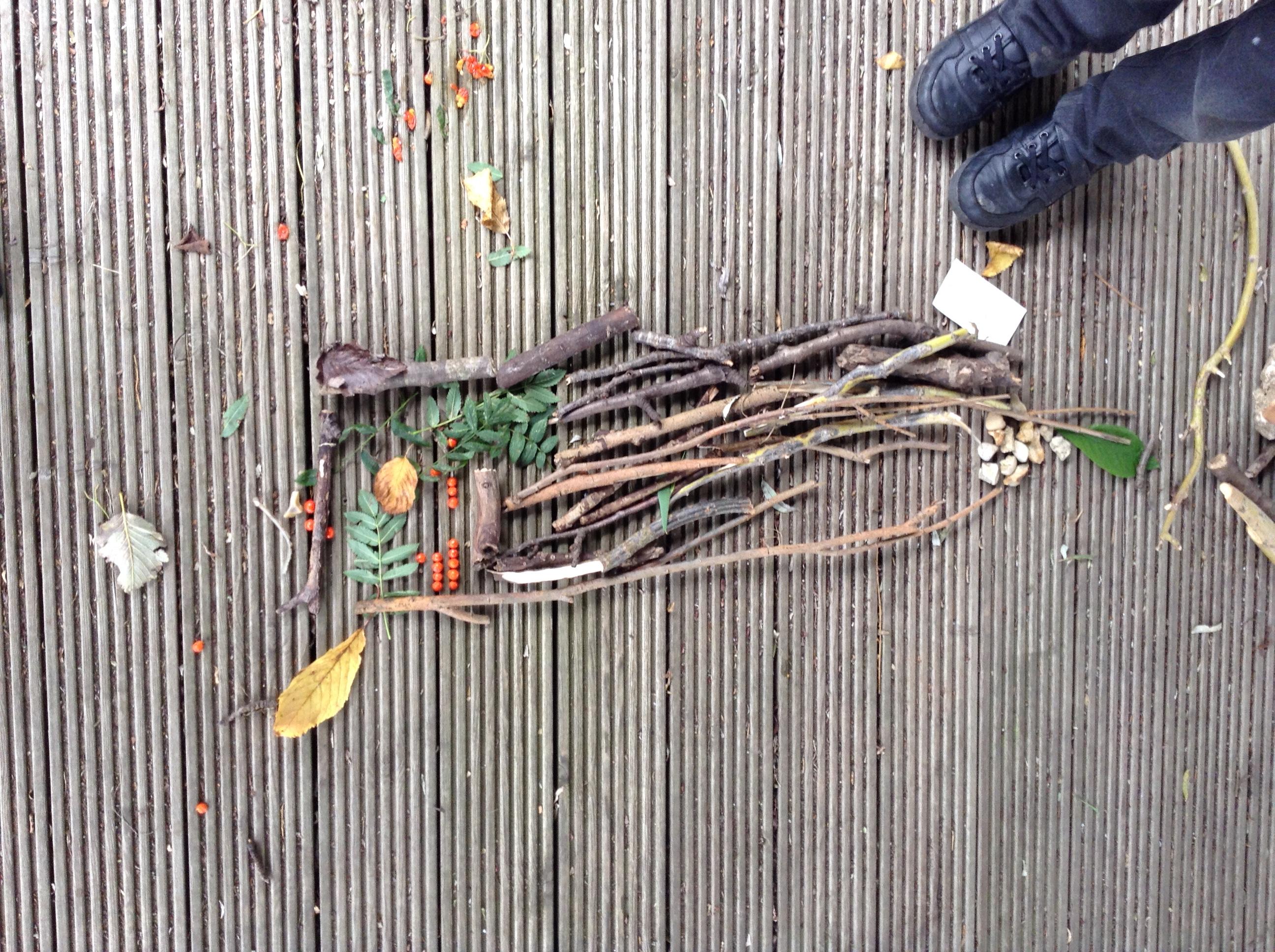 Going outside, we explored found objects and used them in our own sculptures, similar to the work of Tony Cragg. We thought about how found objects can be used to make abstract pieces of art.