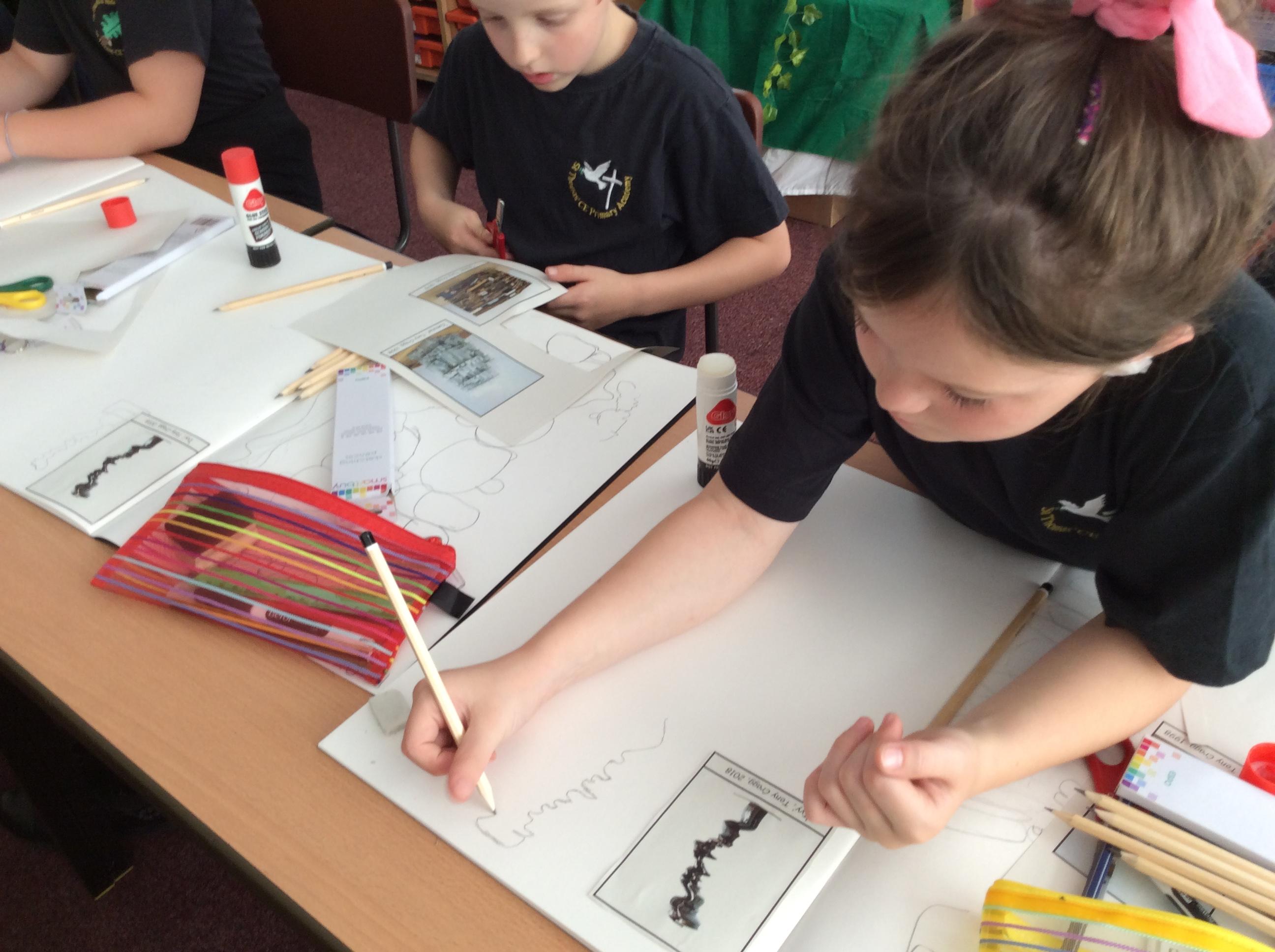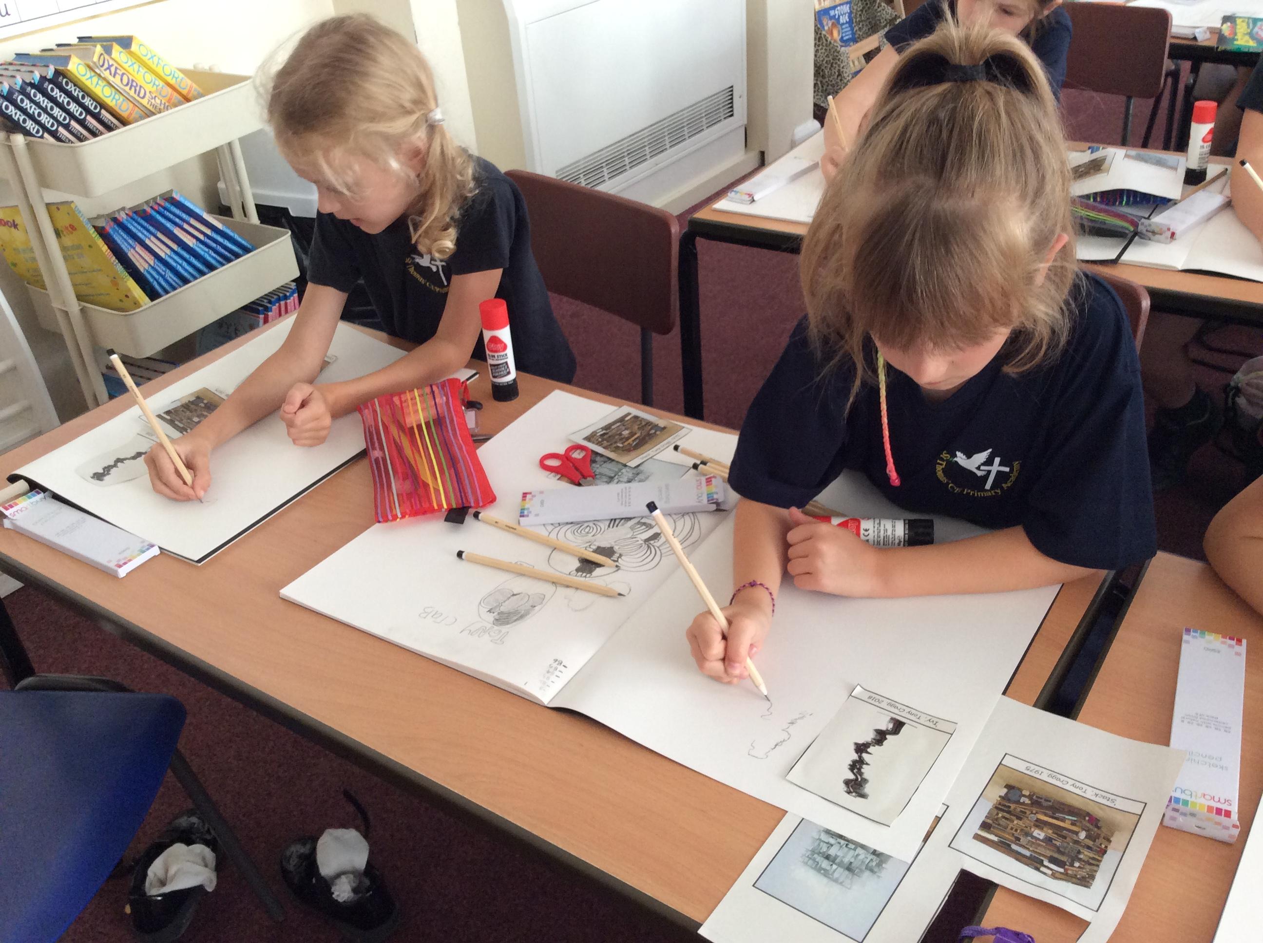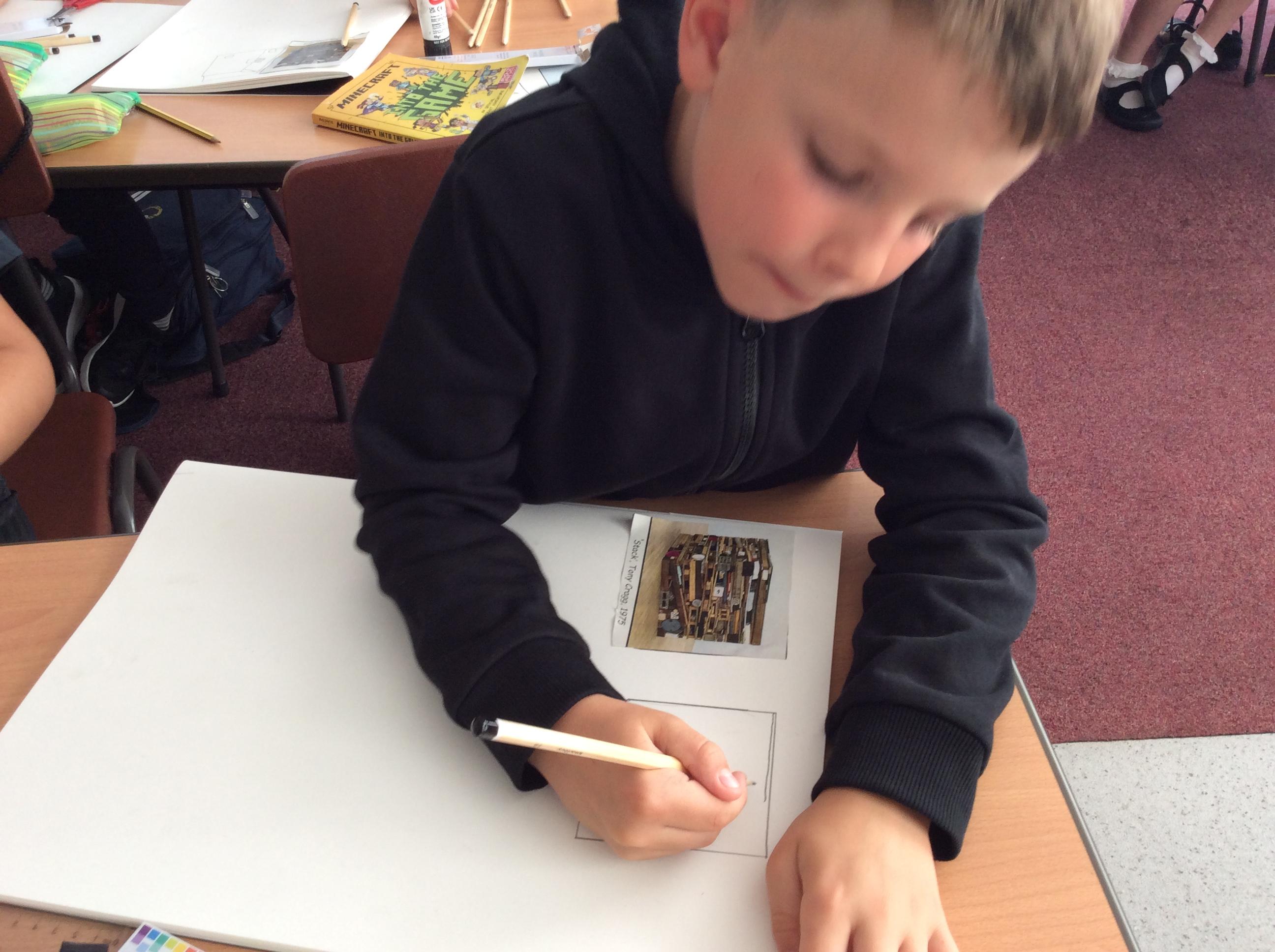 Knowing how space, pattern and texture are used across the artworks, we explored the work of Tony Cragg entitled 'Stack'. Discussing and analysing the piece of artwork, we looked at how the elements: form, space, texture, colour, line, shape and pattern have been shown. We then made our own artist copy of Stack through drawing in our sketchbooks.