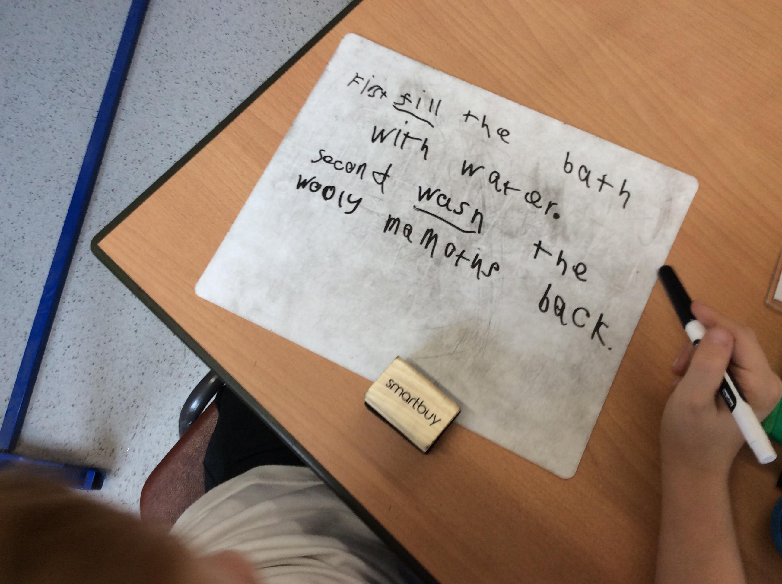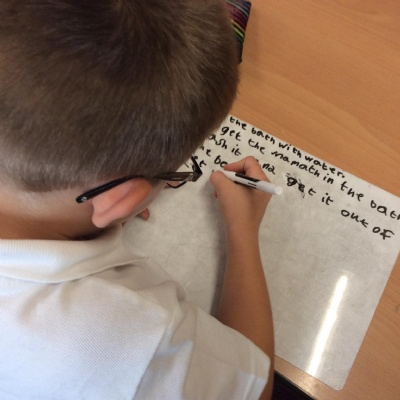 In English, we began by reading and following sets of instructions. After identifying key features of instructions, we were able to write our own based on How to Wash a Woolly Mammoth. Applying our knowledge of this genre, we then wrote instructions for how to wash an elephant which we could share with the new elephant zoo keeper.