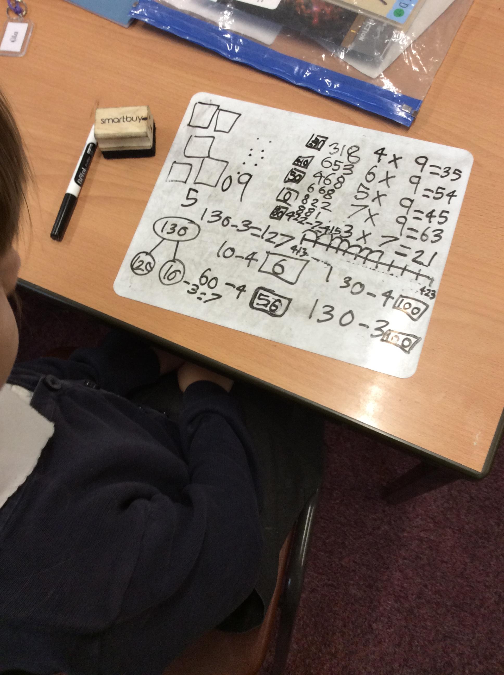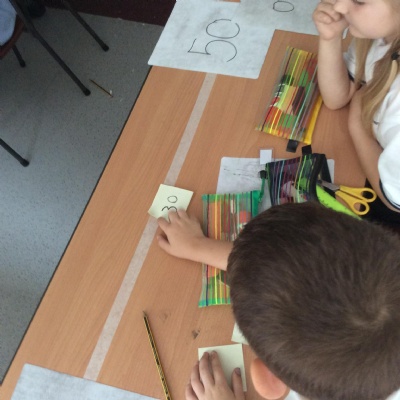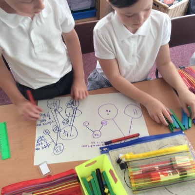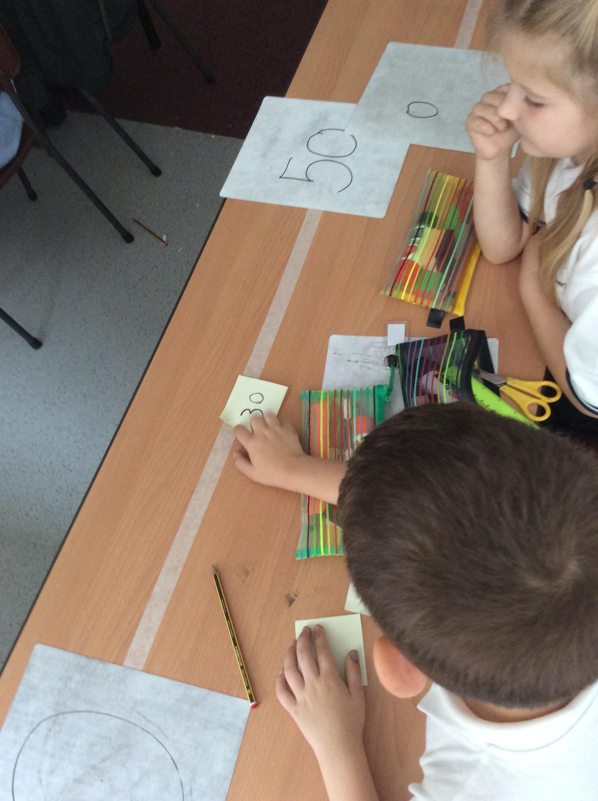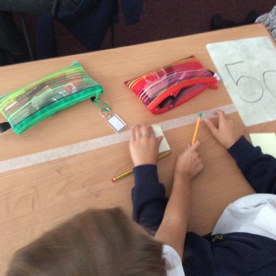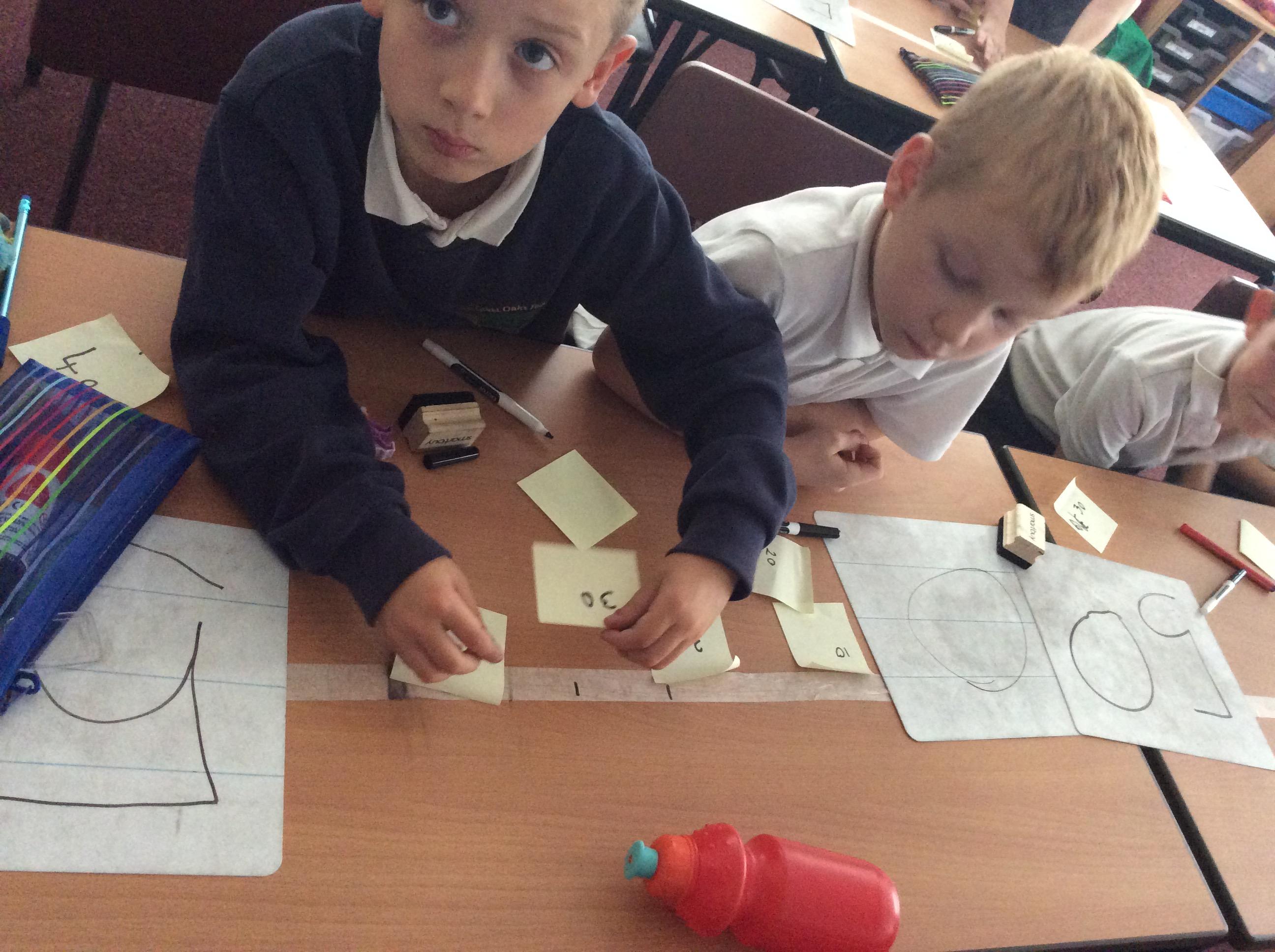 Using different methods, we explored addition and subtraction. Making notes of our working, we looked at using number lines, counting on to the nearest ten and using our knowledge of number bonds for ten to add on parts of numbers.
