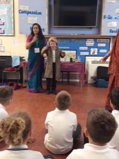 During our Indian experience day, we heard the story of Rama and Sita and how good triumphed over evil. Sunita told us the story which we acted out with her before retrieving it a few weeks later and acting it out in groups.