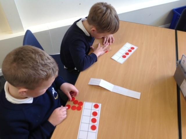 As part of the Maths lesson, the children used the counters to take away one. The children used the vocabulary of find one less.