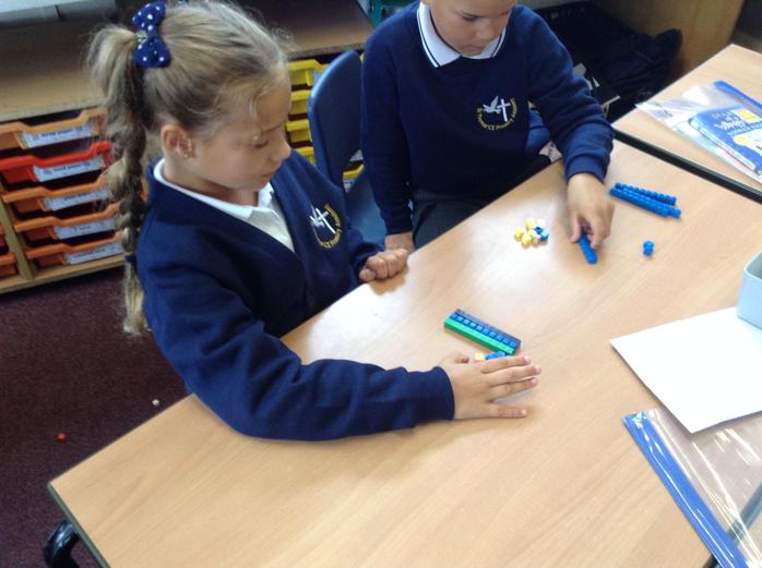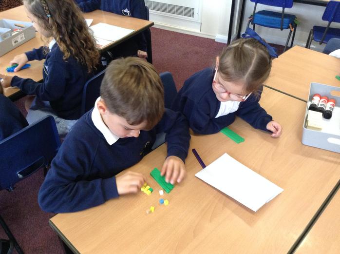 Using the concrete apparatus and the part part whole model, the children found and used the most suitable way to partition and explain the value of two and three digit numbers. The children enjoyed explaining their method and demonstrated confidence when doing so.