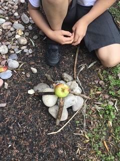 As part of the work linked to Tony Cragg, the children explored the outdoors for the natural resources that may look good as part of  a sculpture. The children then placed the objects together in a variety of ways deciding what looks better.