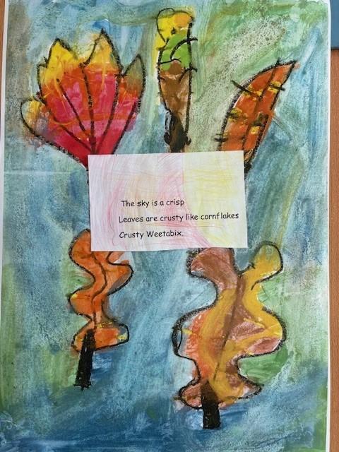 As part of the children's work on Haikus, they produced an autumn themed picture as the background. These are now displayed in the classroom.