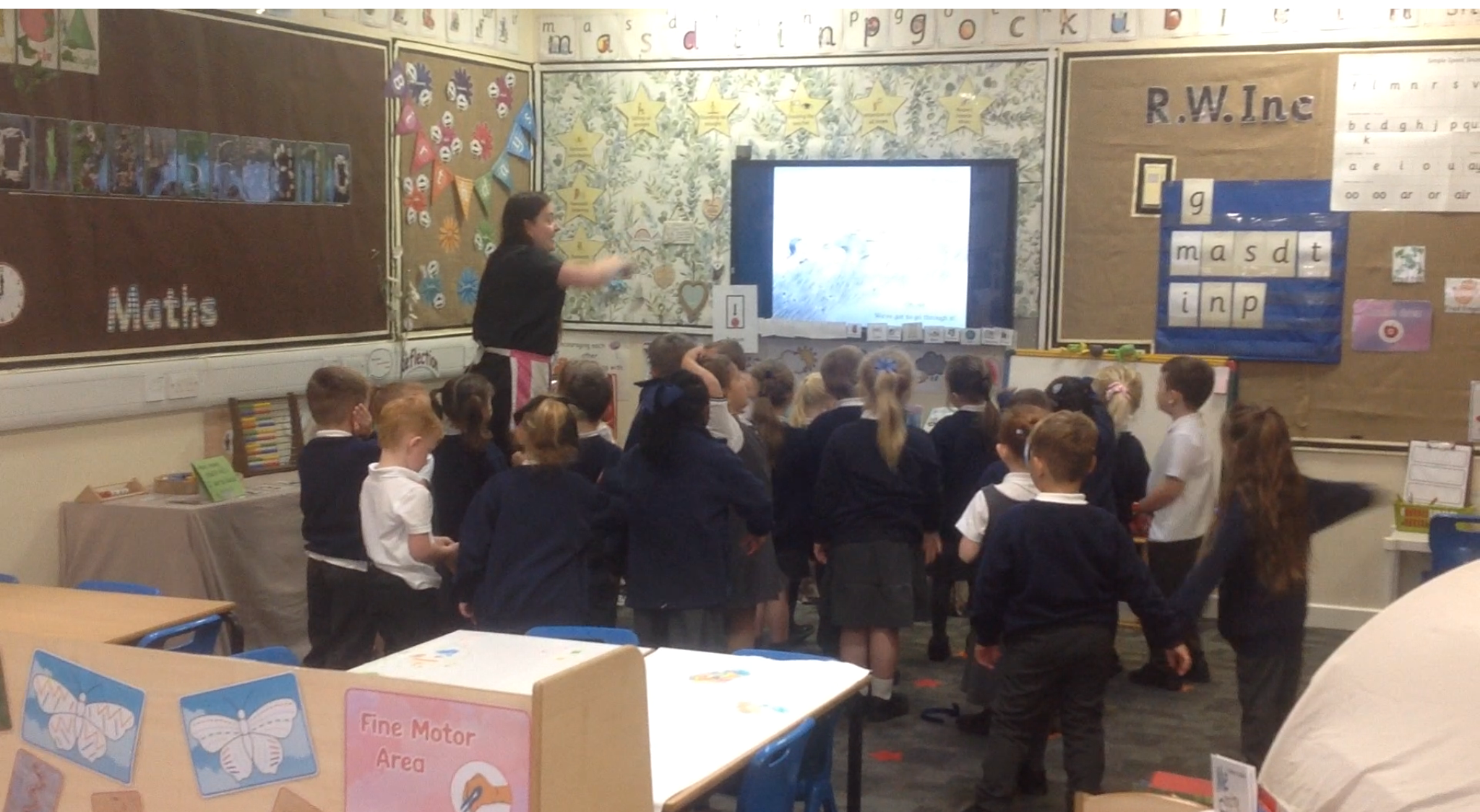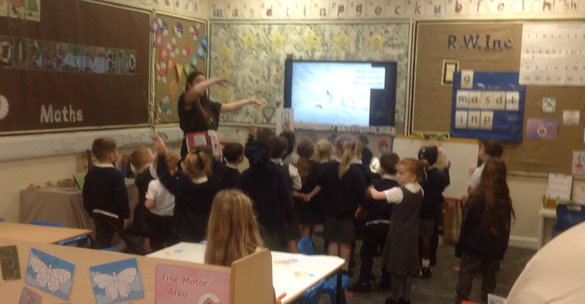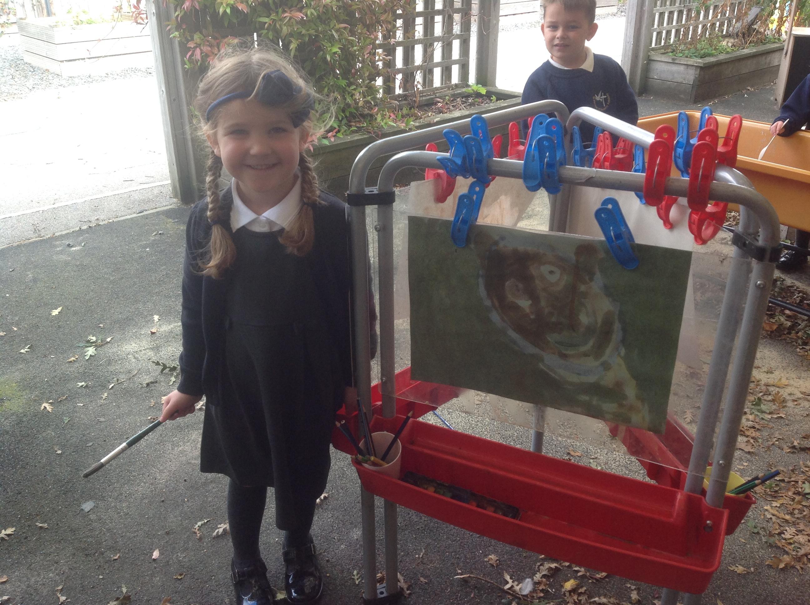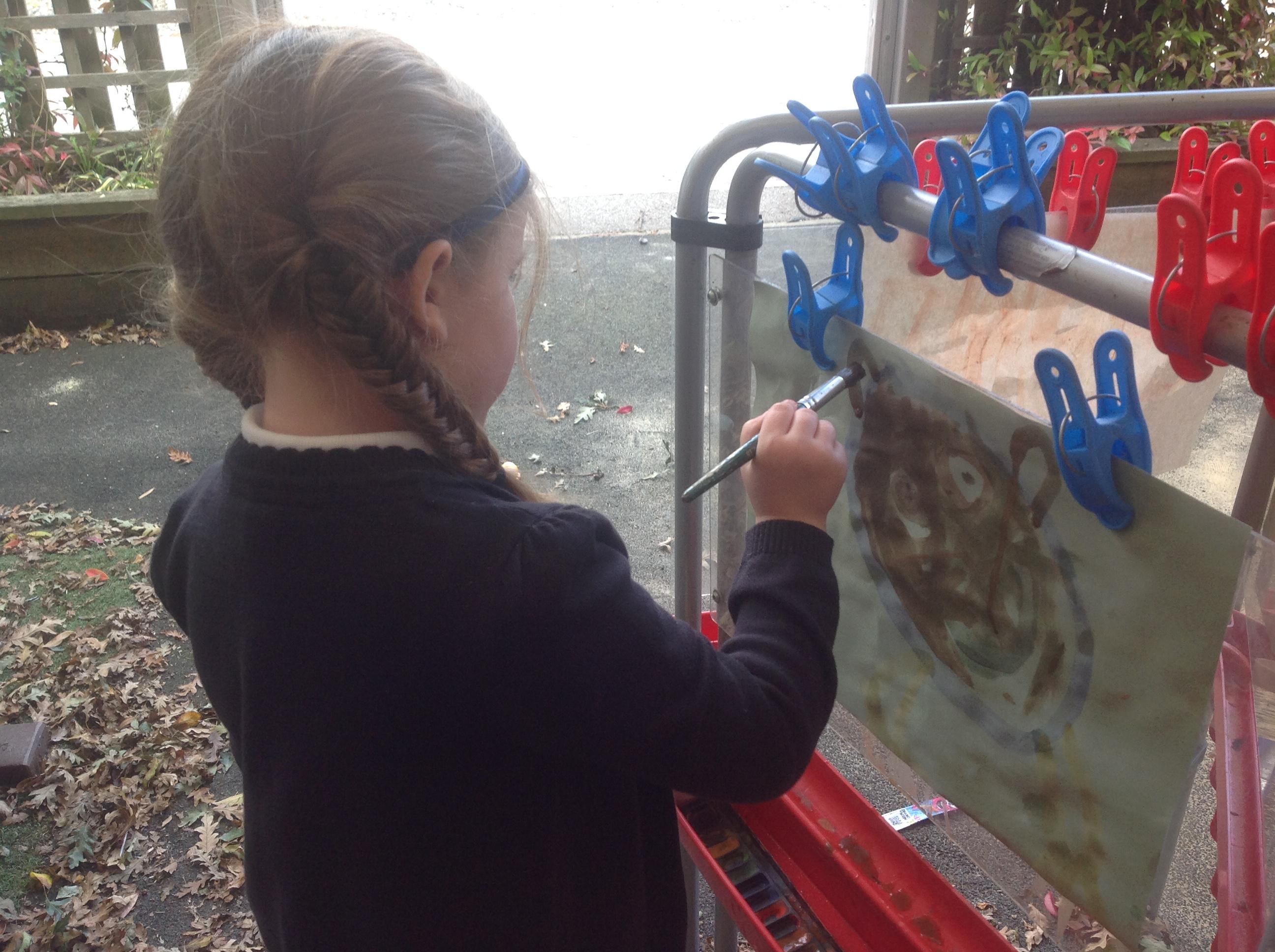 The children have loved joining in with the repeated phrases in the story and re-telling the story using different actions. The children have been able to continue to explore the story throughout the school day within the provision. Some children enjoyed creating pictures of the bear in our outdoor creative area and making bear collages inside.
