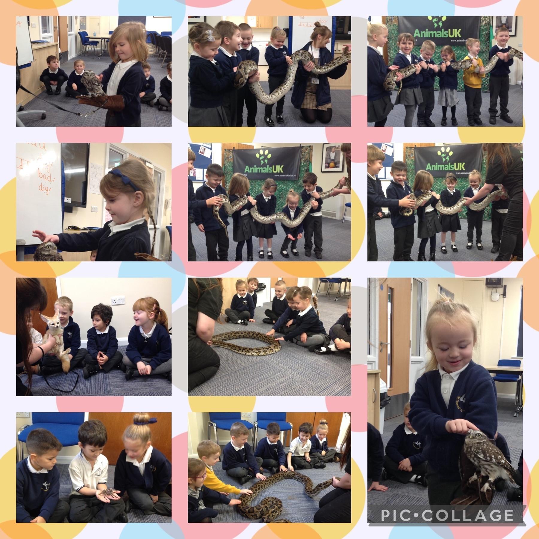 The children had a fantastic morning on Wednesday as they were able to meet a number of animals, great and small. This week the children have been learning about nocturnal animals and today they had the chance to meet a fox and an owl. During this discussion, the children were able to identify the features of an owl and find out more about where they live and what they eat. They were also able to learn about a snake and a tarantula and some children showed courage in holding these creatures!