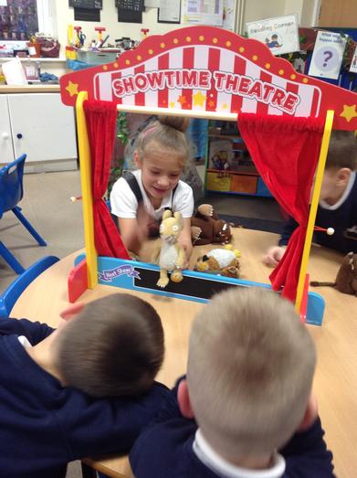The children have been developing their story telling by retelling stories that they have read in class using the puppets and puppet show. We have been impressed with their use of story language and vocabulary to bring each story to life.