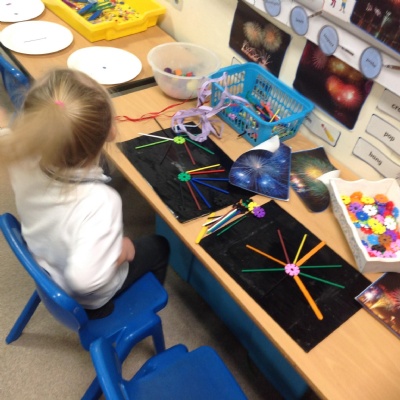 This week the children have been learning about Bonfire Night and how it is celebrated by families each year. They were able to make connections to the festival of Diwali which they had covered last term. Throughout this week, everyone has had the opportunity to create their own firework pictures using the printing technique and also create their own representations of fireworks using the enhanced provision. We have been blown away by the vocabulary generated by the children to describe a firework display and throughout our circle times, the children have learnt the importance of staying safe when taking part in activities with parents. Next week, the children will have a visit from the local fire fighter team and build upon their knowledge of Bonfire fire night and how emergency services help the community.