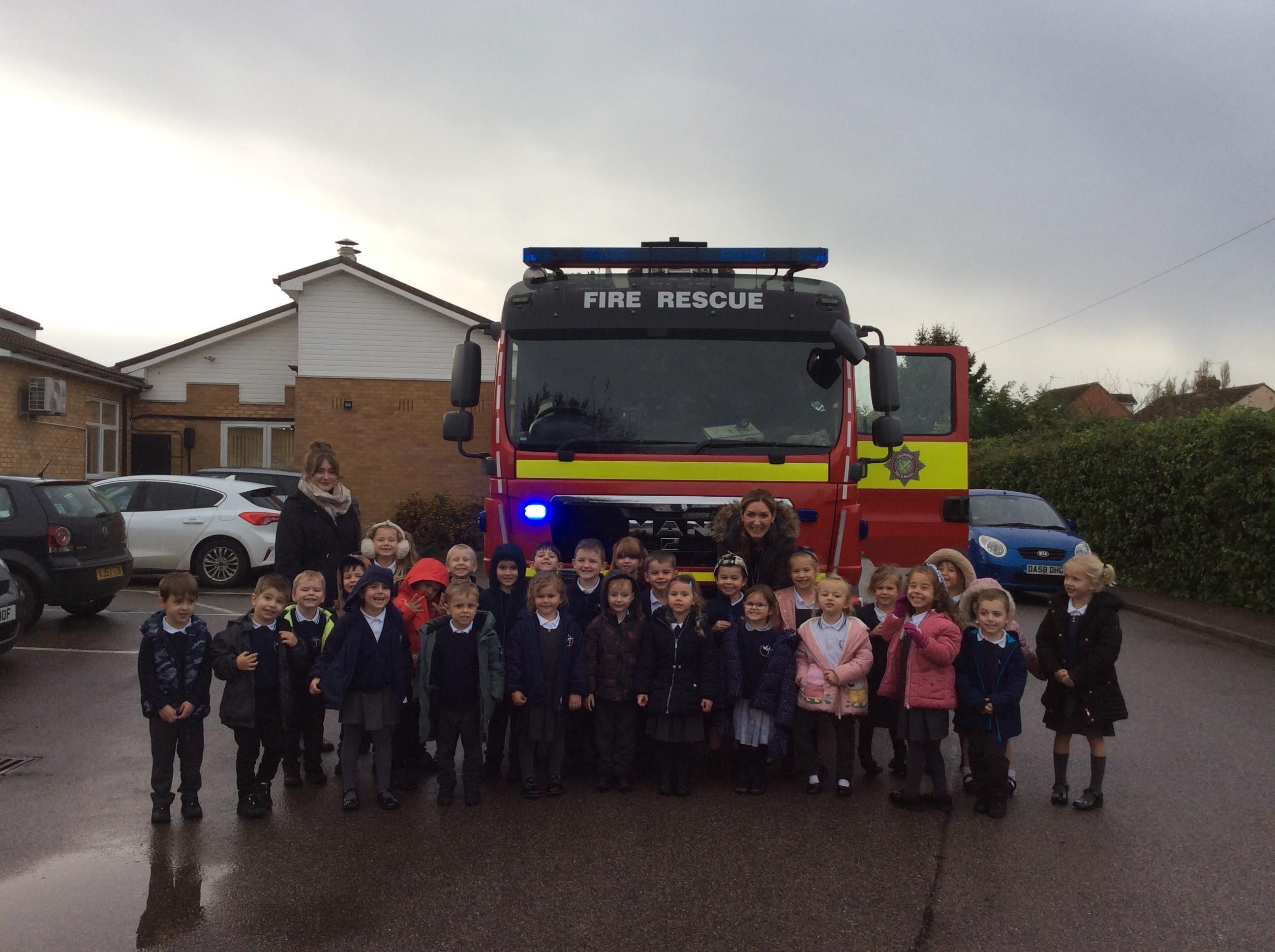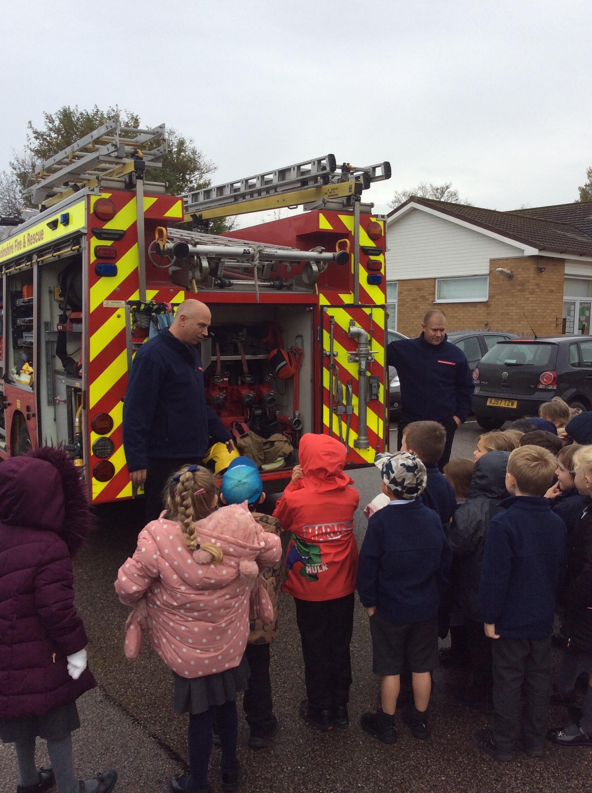 The children enjoyed their visit from the local fire fighters this afternoon and were fascinated by the equipment they have to use and how they support the local community. All the children had the opportunity to sit inside the fire engine, listen to the loud siren and also revisit Bonfire Night safety rules.