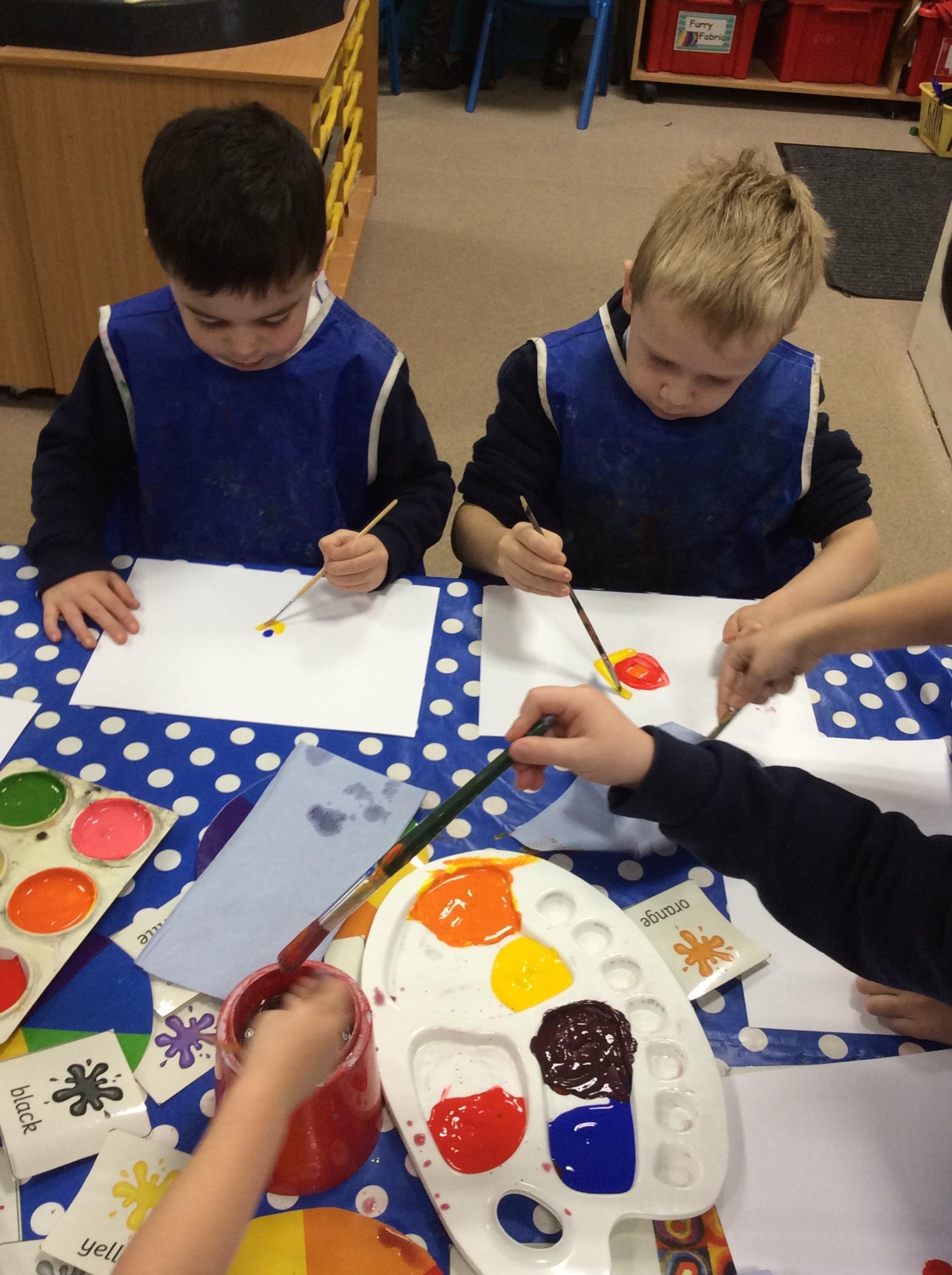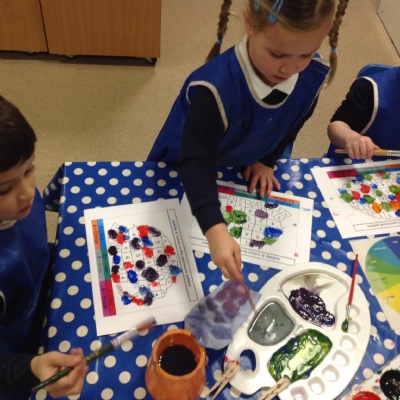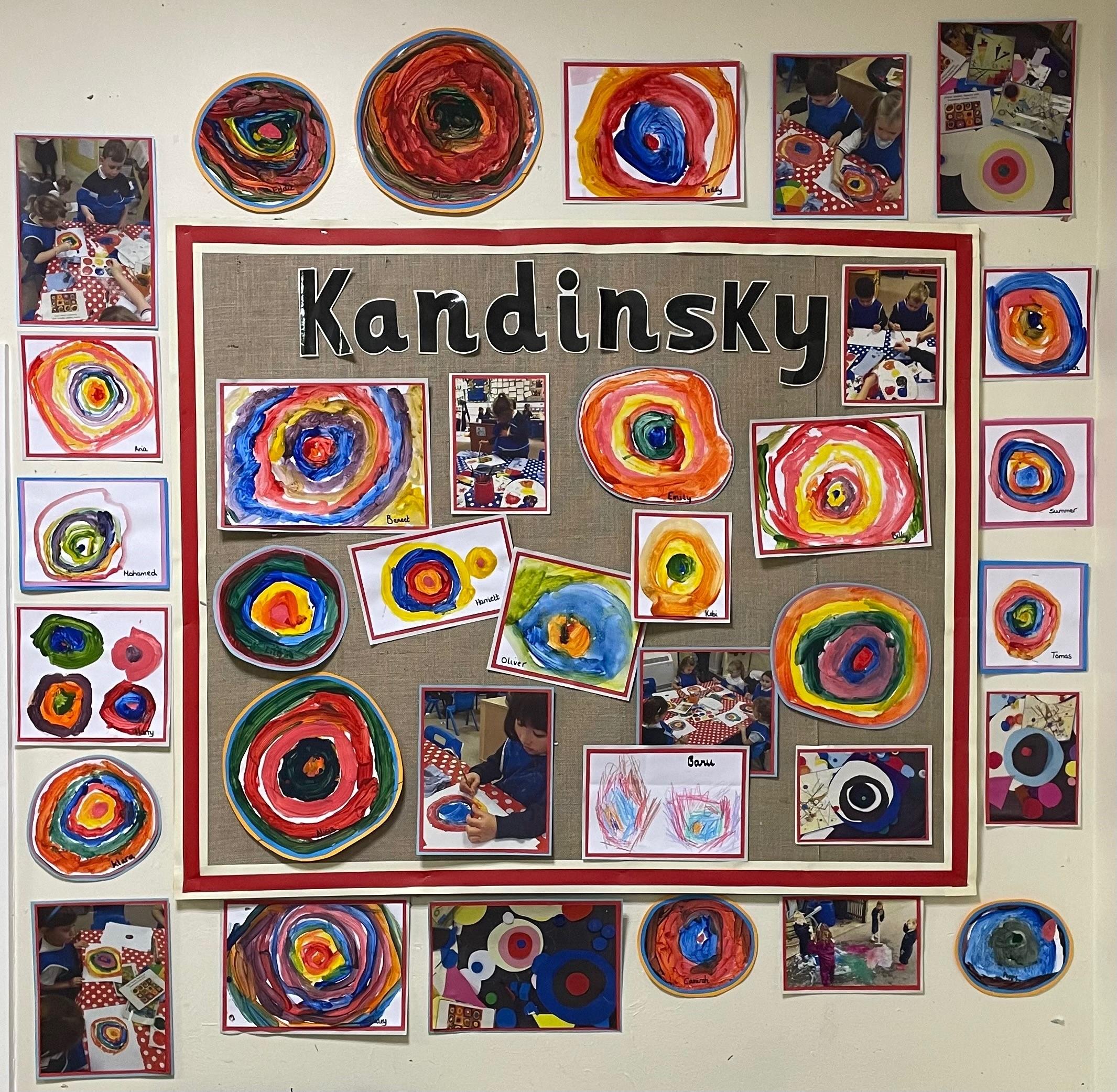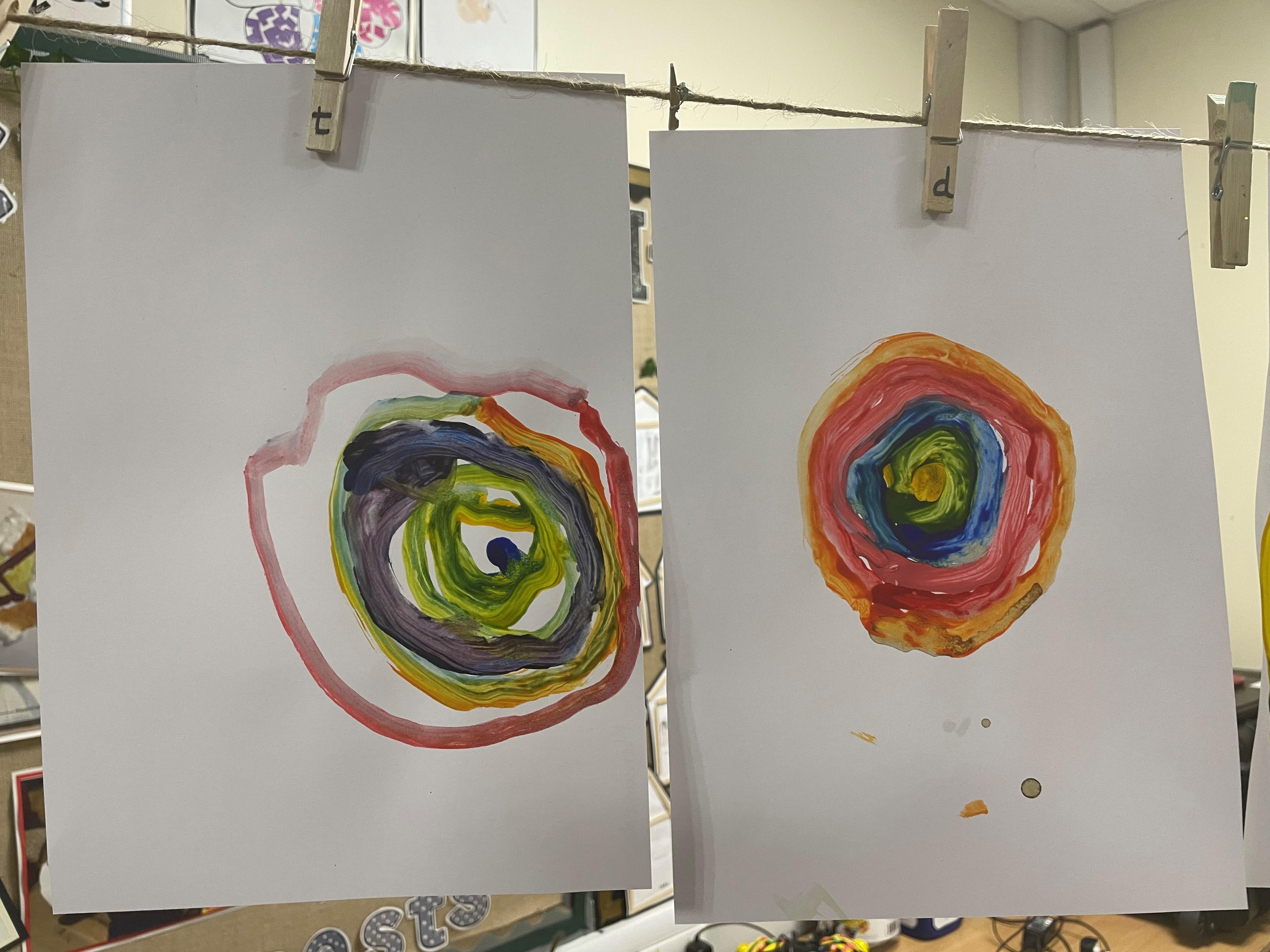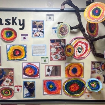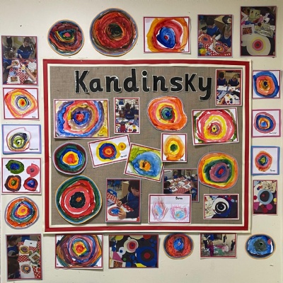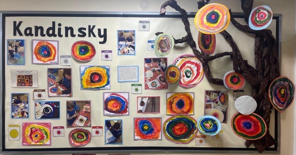 This week the children are learning about the artist Kandinsky and his use of shape in his pieces of art. This has linked perfectly with our Maths learning on triangles and circles. They have had the opportunities to explore colour mixing during child initiated time and applied this in their representations of Kandinsky's `Concentric Circles` art work. Fantastic work Joy Class.
