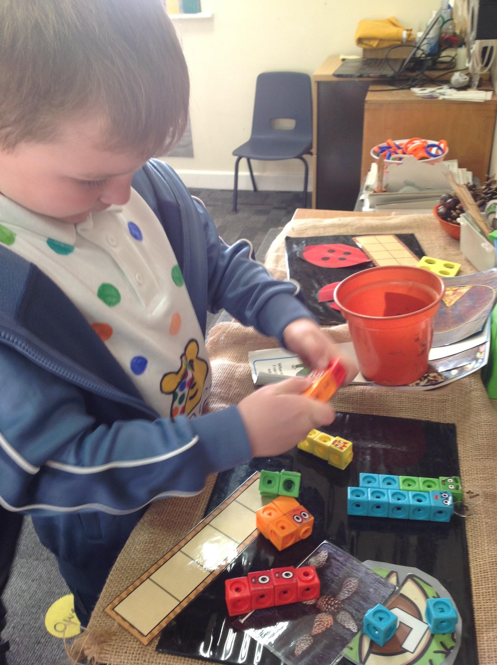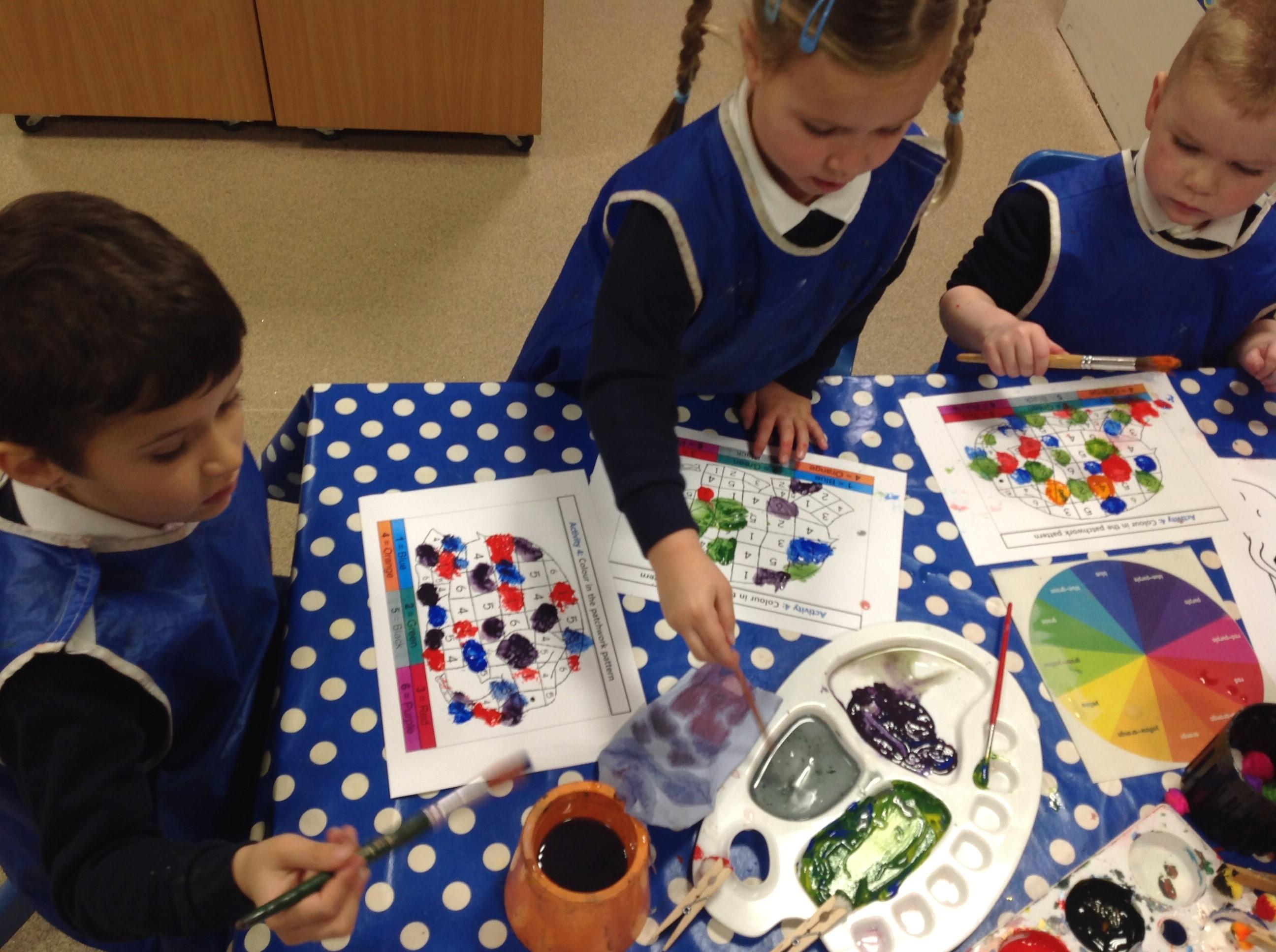 In Maths this term, the children have been learning about composition and recognising numerals to 5 using subitising knowledge. Throughout this week, the children have created their own Elmer using paint by numbers. Some children have continued to practice their number formations during independent learning time using the number rhymes.