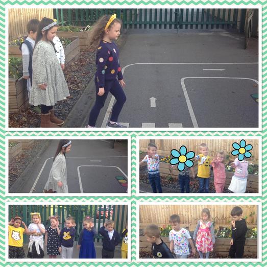 We have also been learning about road safety, we discussed how we can cross a road safely and then practised this outside.