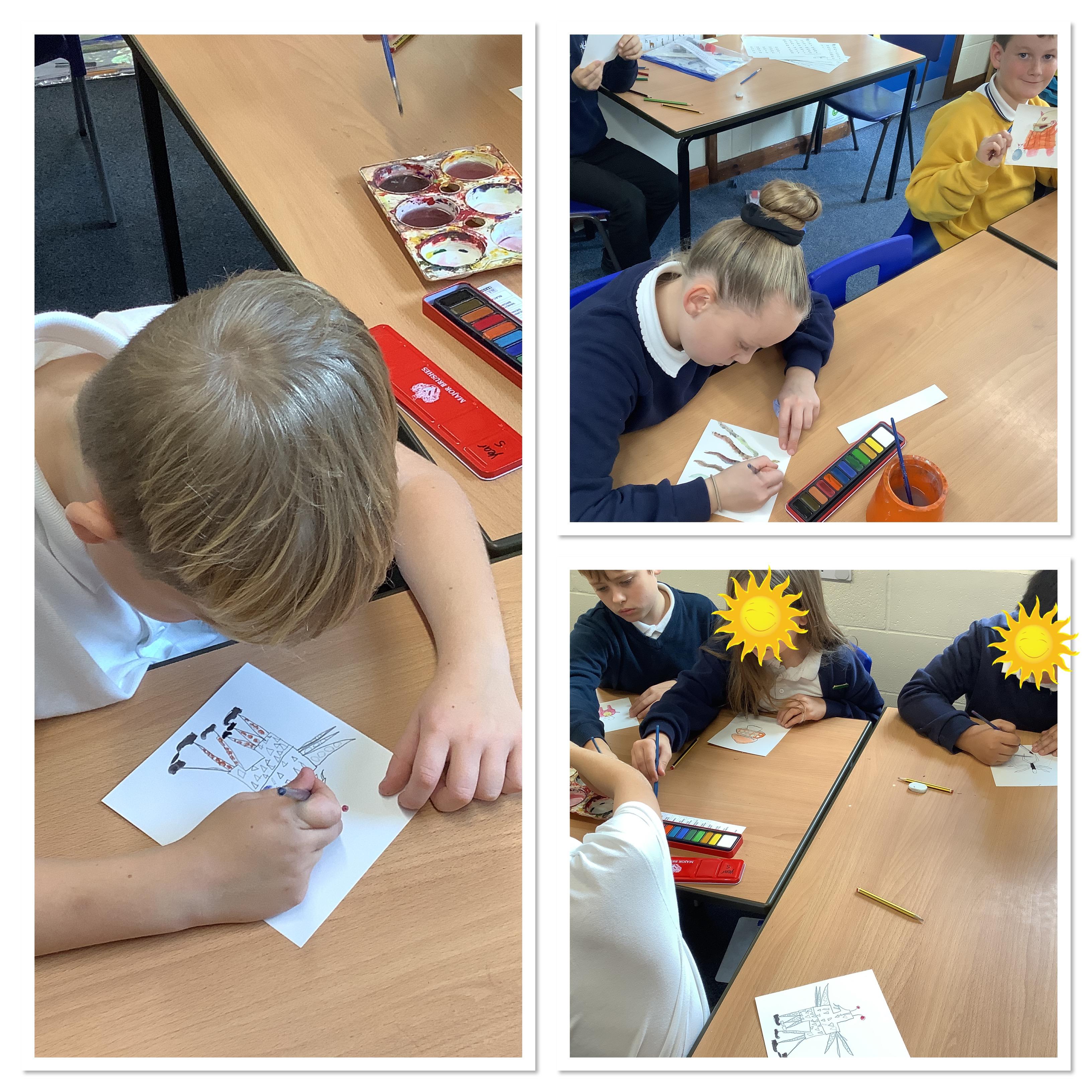 In English we gathered information vocabulary to create expanded noun phrases about aliens. Using these descriptions we painted our own aliens, which will feature in the narratives we are beginning to write.