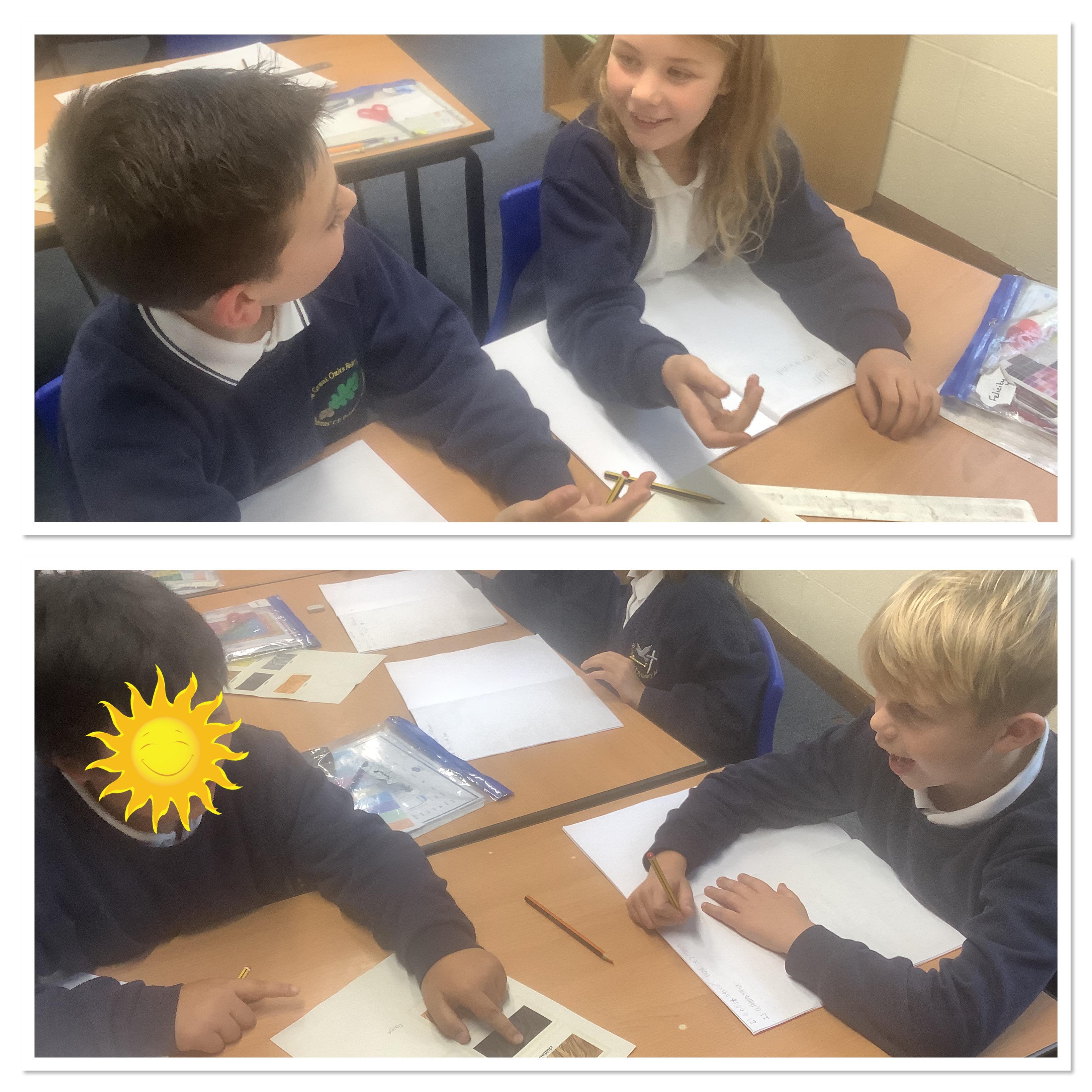 We learned vocabulary to describe our partners’ hair and eyes, then developed the words into sentences. We practised our pronunciation repeating these phrases to each other.
