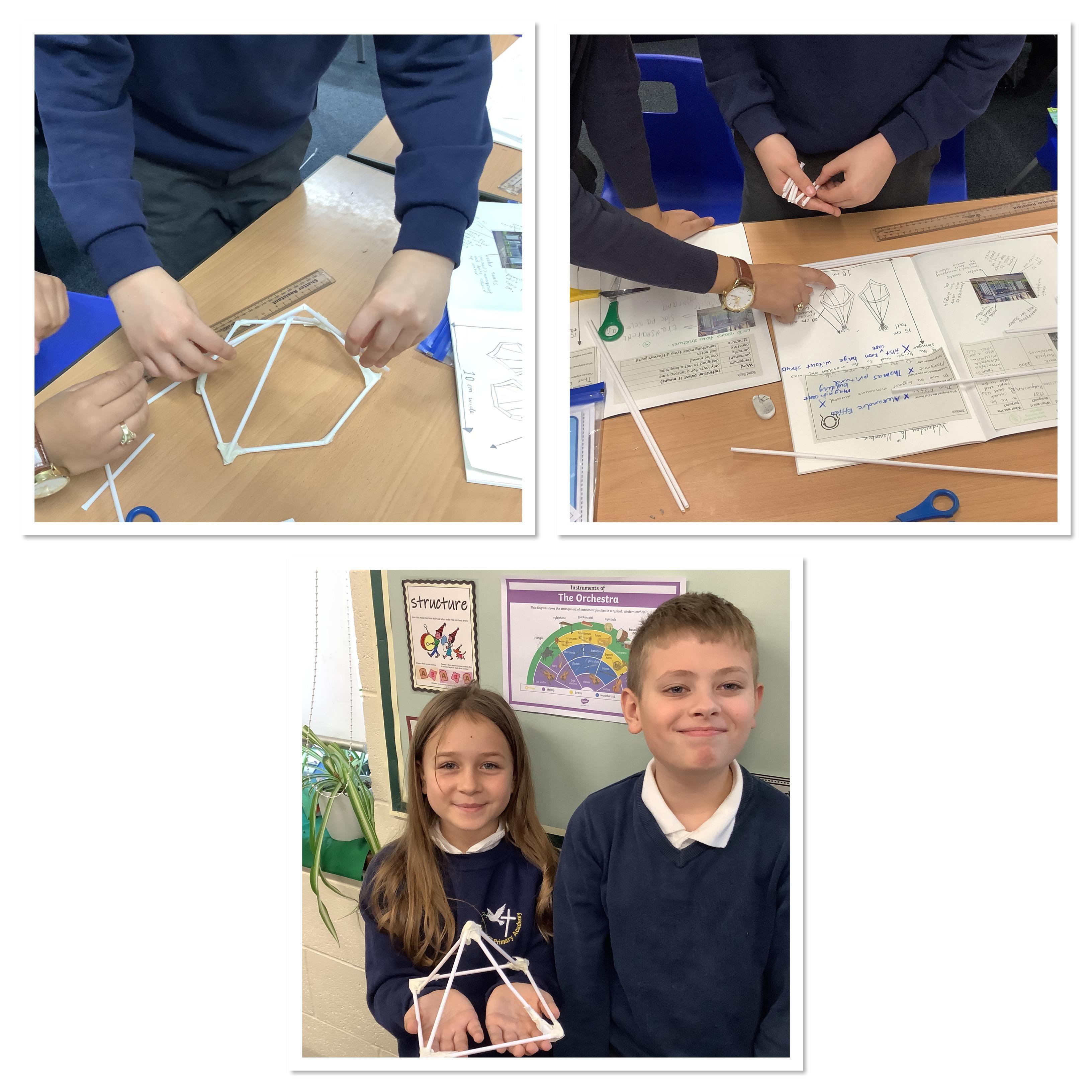 Today we developed our understanding of structures and frames by learning about triangulation. We tested 3d shapes to failing point, then added triangles as reinforcement and retested. This helped us when we went on to design our own bird hides, and create prototypes.