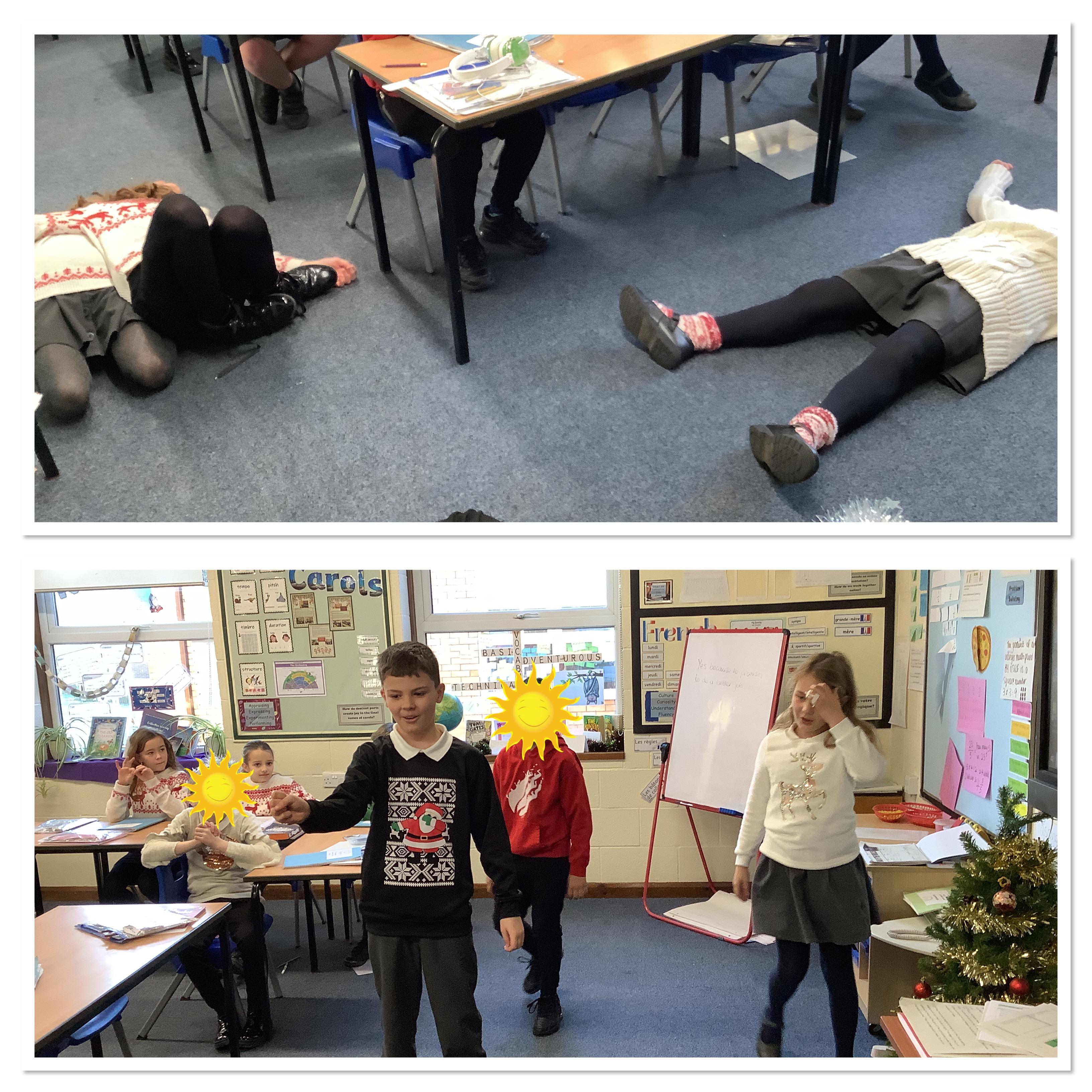 We explored different possible endings for our science fiction narratives through role play. Most of these finished with many dead aliens!