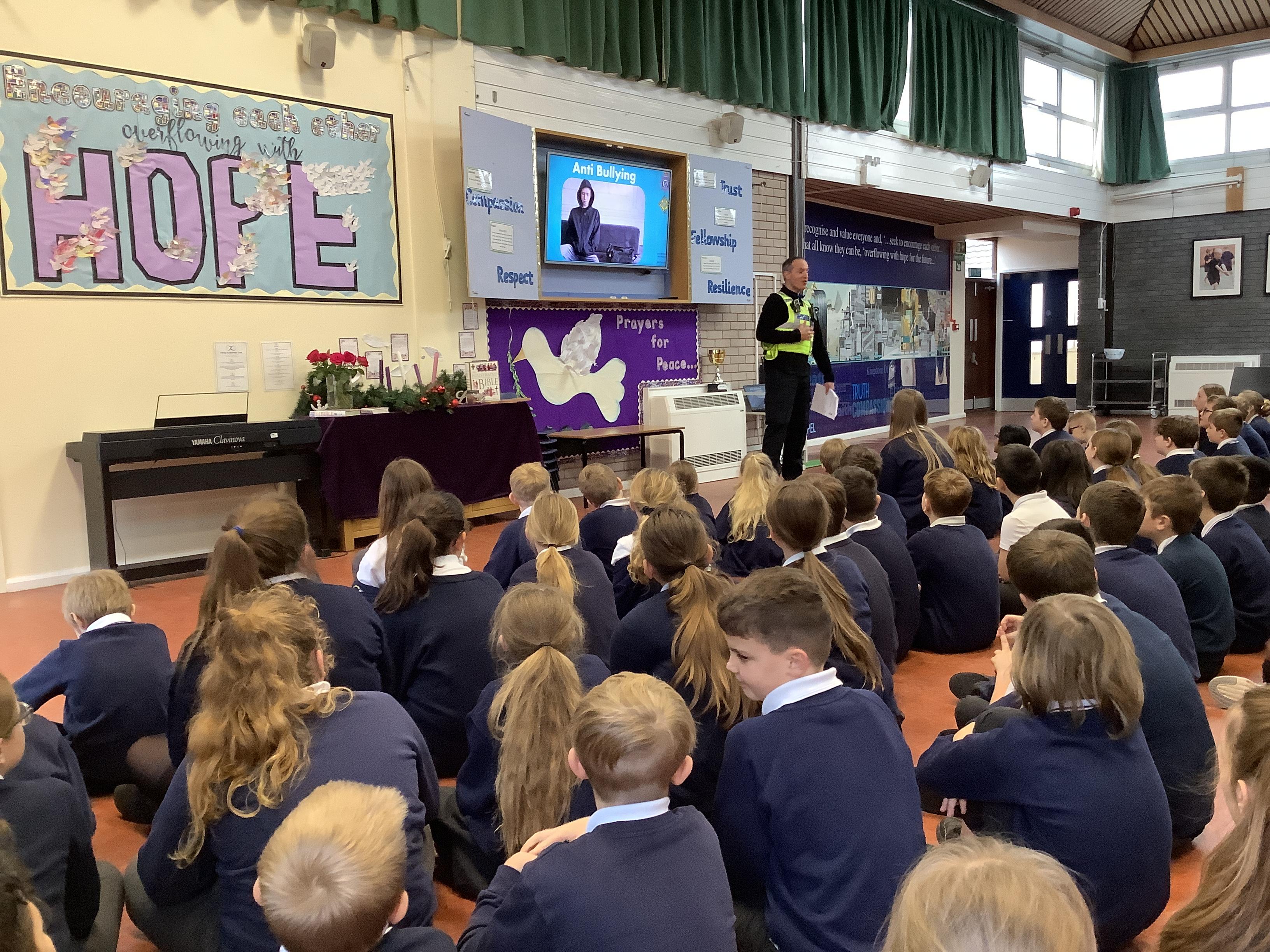PCSO Neil came to deliver an important message in an assembly for Years 5 and 6 today. This followed on from our work through anti bullying week, so we were able to answer many questions and give examples of different kinds of bullying and why someone might bully others.