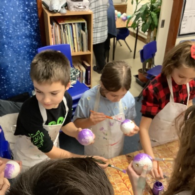 Our decorations for the hoops this year are baubles and we have made a great start making them!