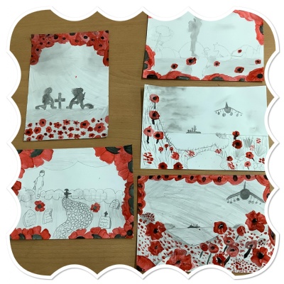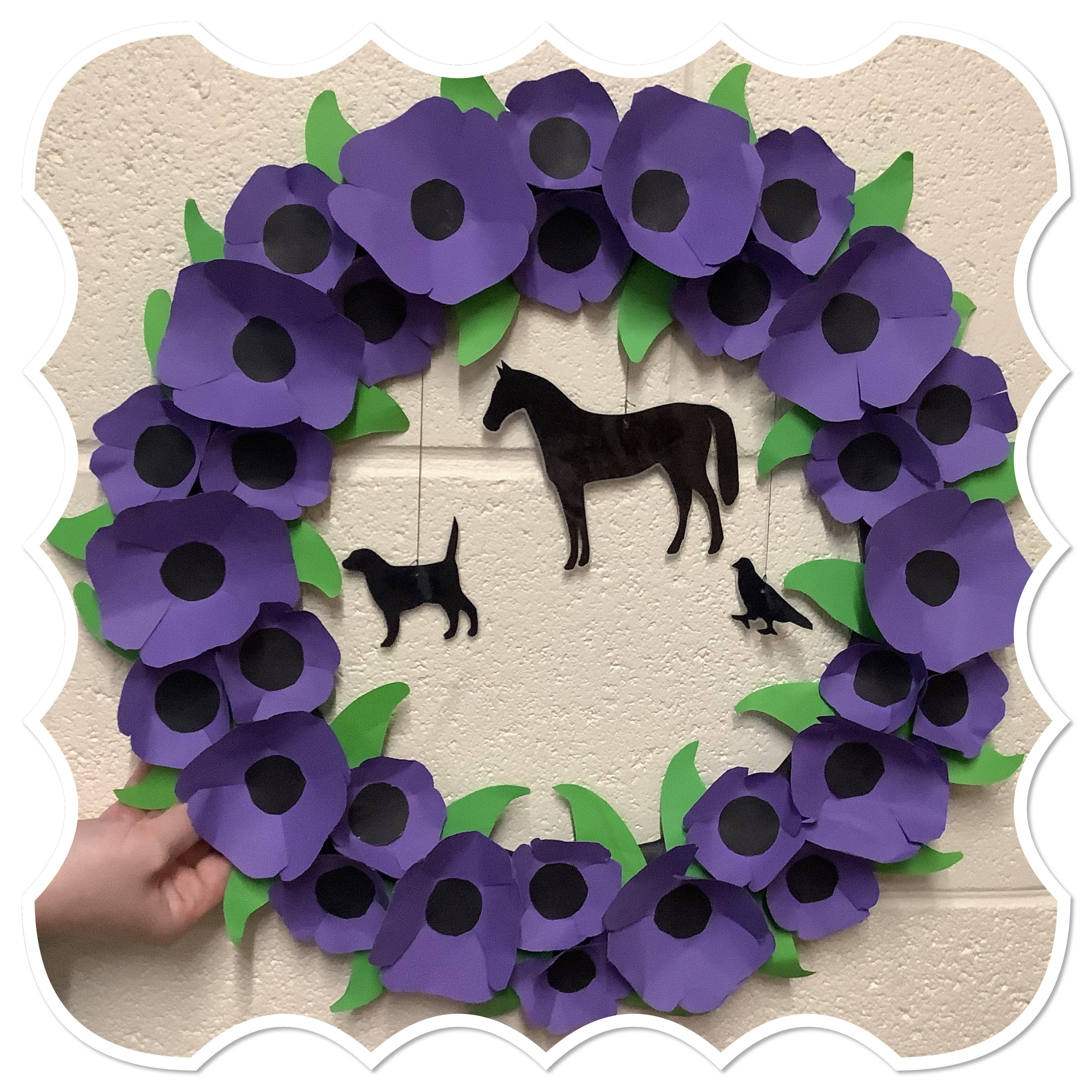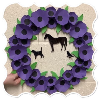 Preparing for the annual remembrance assembly, Year 5 made a purple poppy wreath, in memory of the animals involved in war.