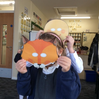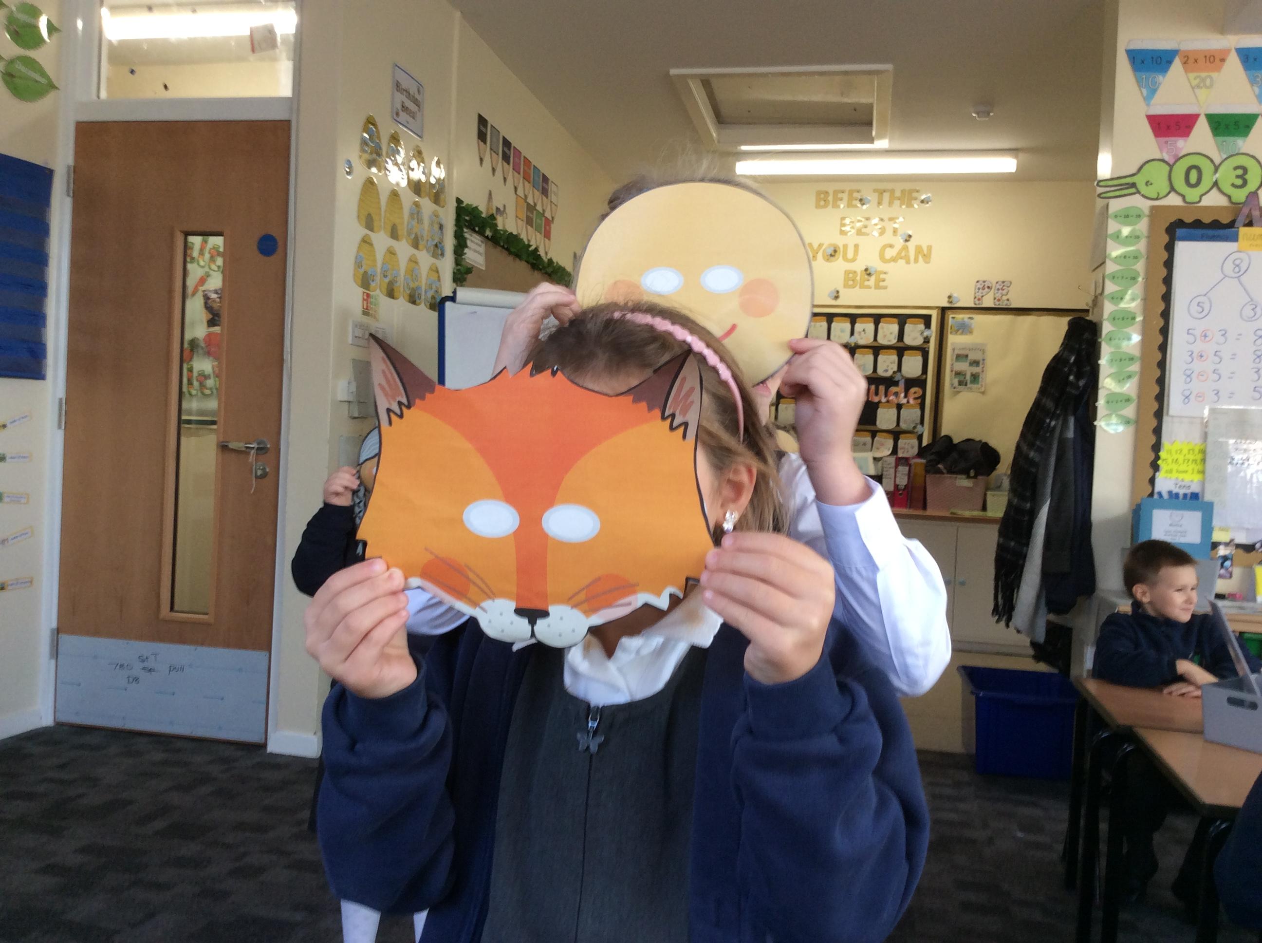 The children were really excited to act out the story The Gingerbread Man using role play masks to help them become the characters.