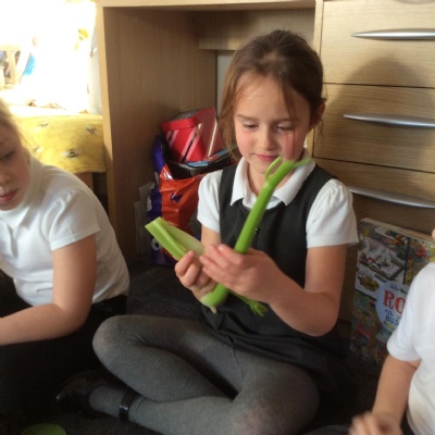 In Design Technology this term, the children will be looking at different soups and what ingredients are needed, so that by the end of the term they can make a soup of their own. This week we were investigating different fruits and vegetables that are used in soups and what parts of the plant we use, either leaves, roots, flowers or bulbs.