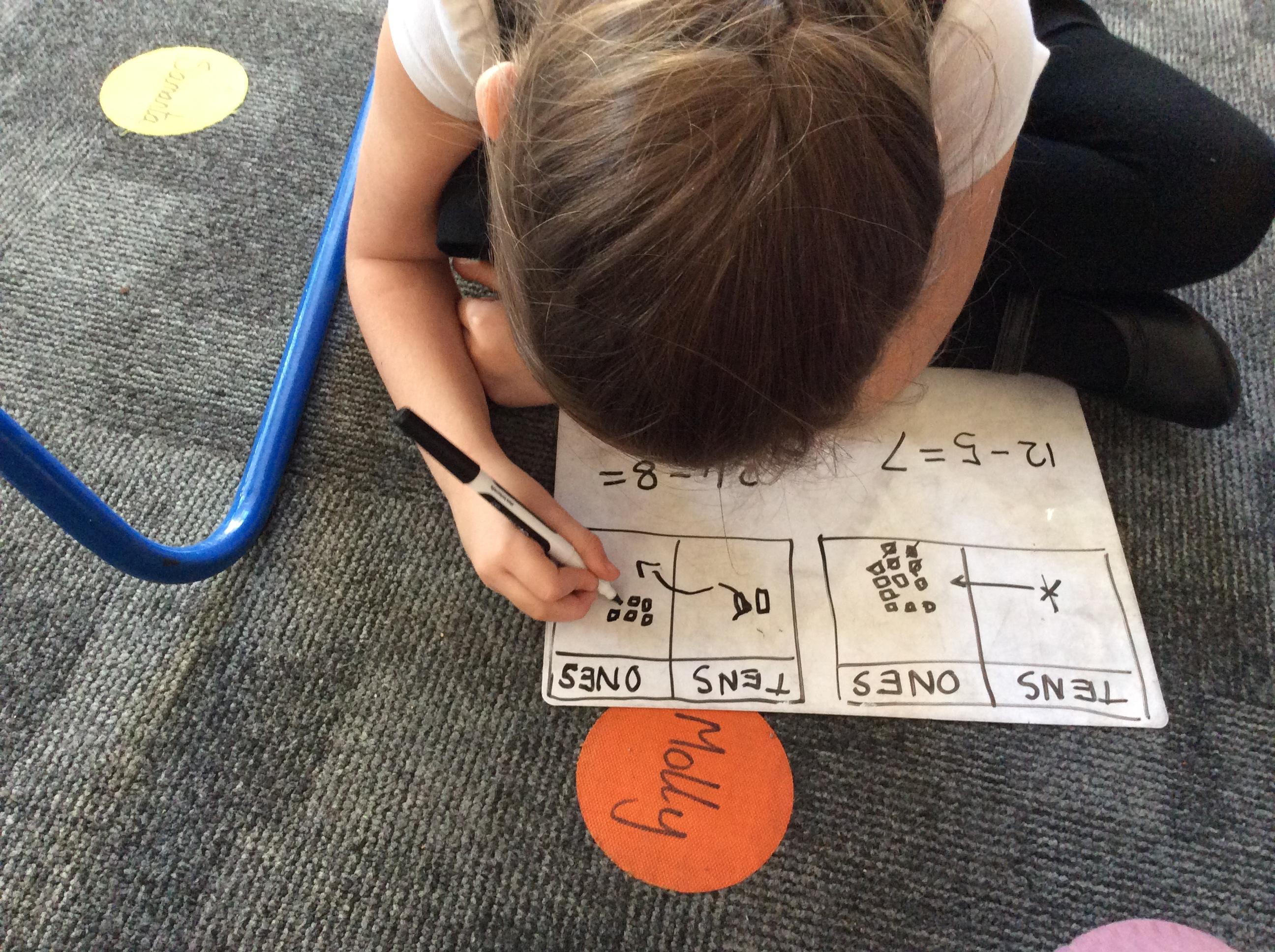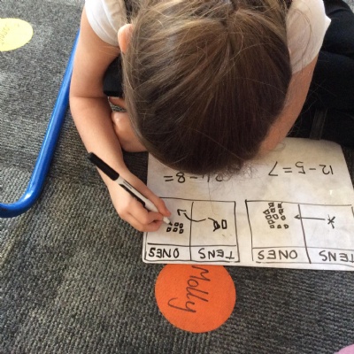 During this week in Maths the children have been learning to subtract numbers using their knowledge of number bonds, as well as exchanging 1 ten for ten ones to enable them to subtract larger numbers, 23 - 8 =. We started off by using dienes to help us visually see exchanging 1 ten for 10 ones, then moved on to drawing the exchanges.