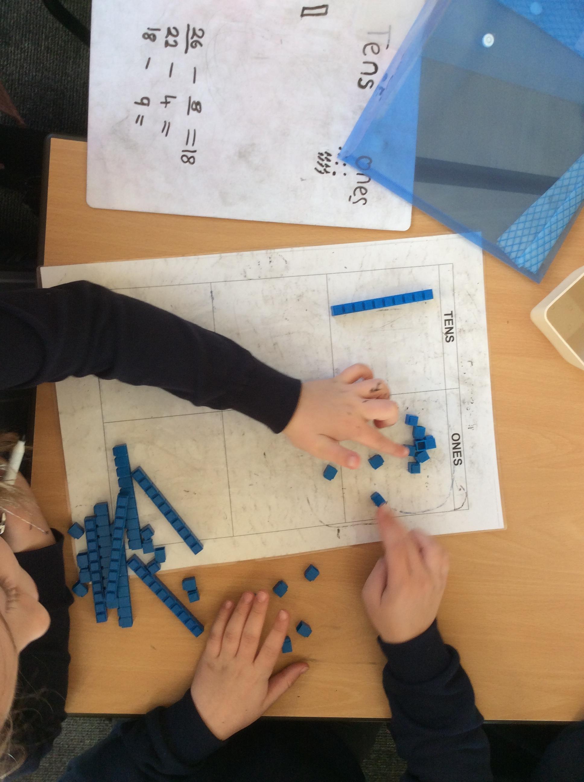 During Maths this week the children have been learning how to subtract with 2-digit numbers (56-32=) and on Friday we started to subtract 2-digit numbers with exchanging (43-28=). We need to remember to always start subtracting the ones before we subtract the tens.